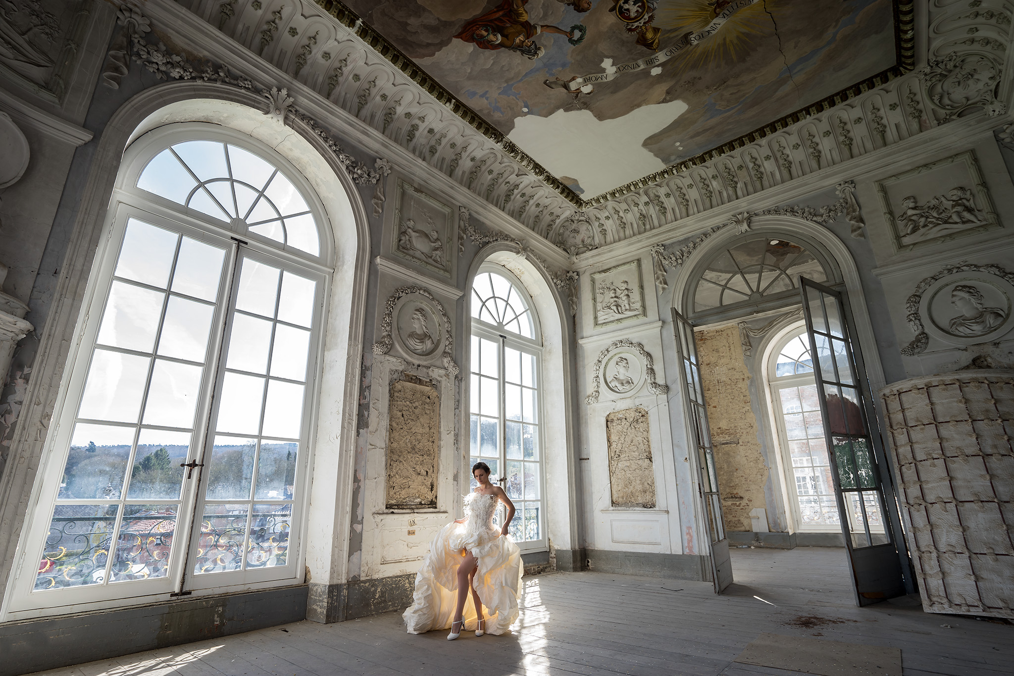 Waux-hall, een oud casino in de stad Spa, vormt het decor voor deze foto met model Kim van der Drift.