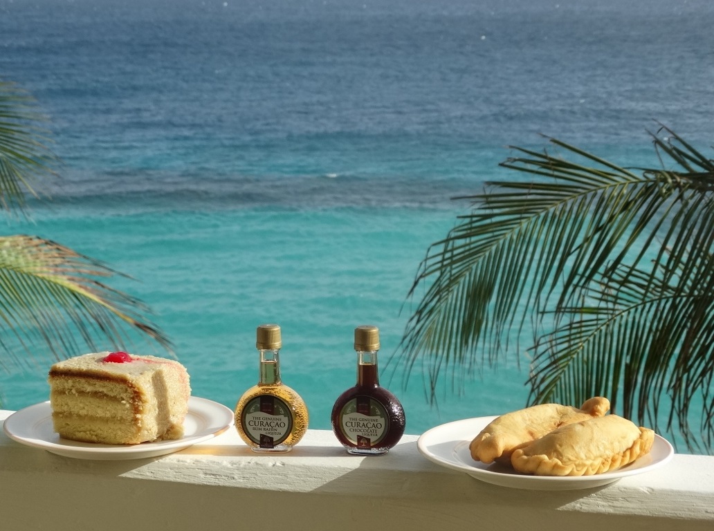 Tijdens ons 25- jarig huwelijk op Curacao namen we een lekker stukje taart en een pasteitje op ons hotel balkon.