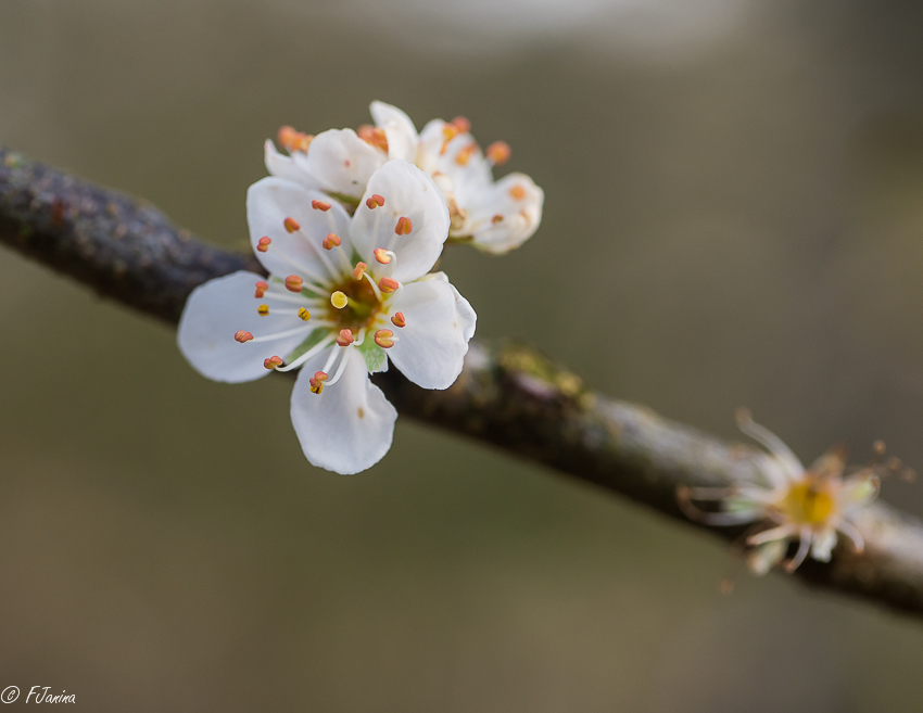 Sleedoorn bloesem van vorig seizoen, maar de eerste bloesem en knoppen al gezien.