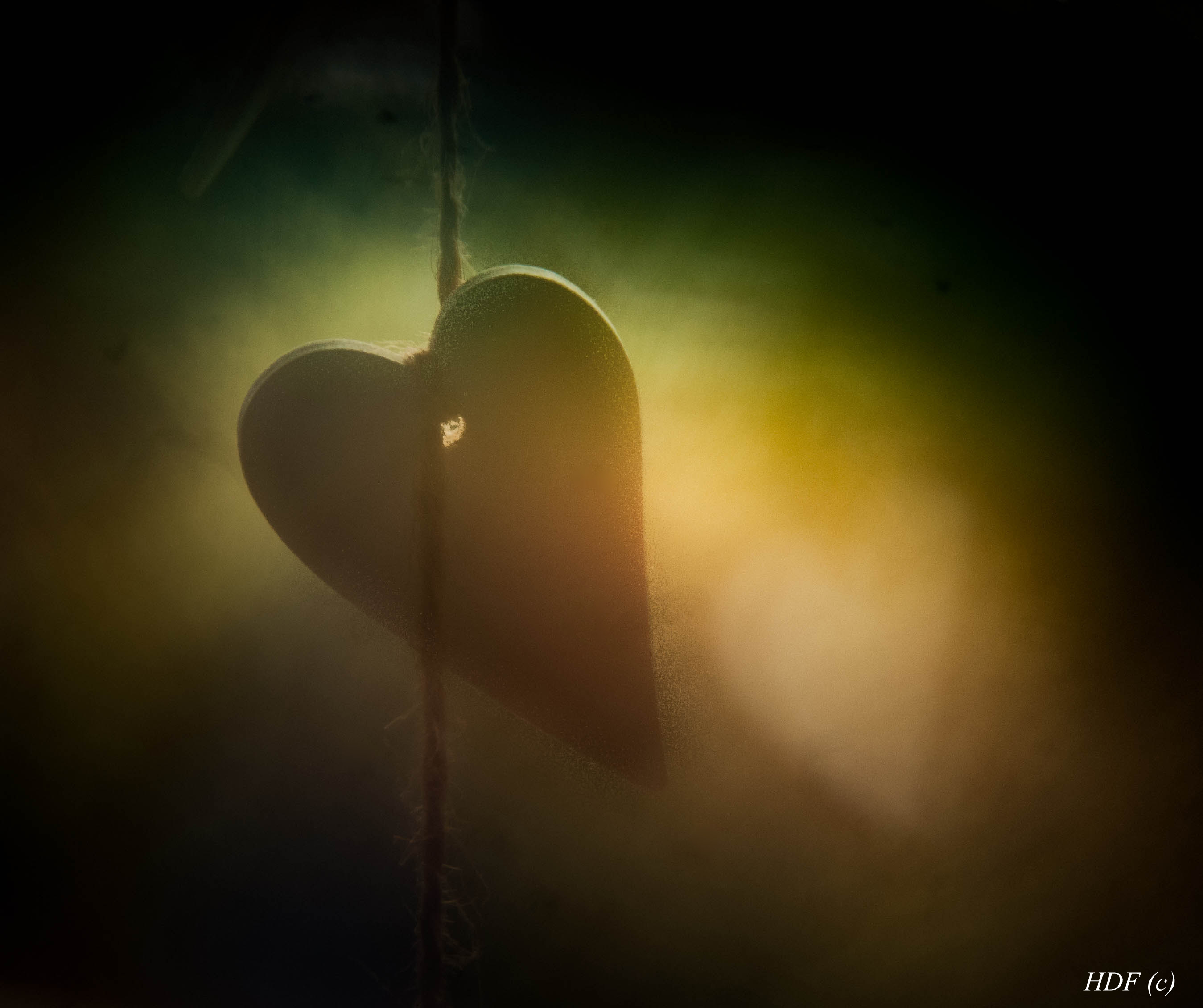 Een cd-r schijfje voor de lens en de weerspiegeling in het raam van het hartje.