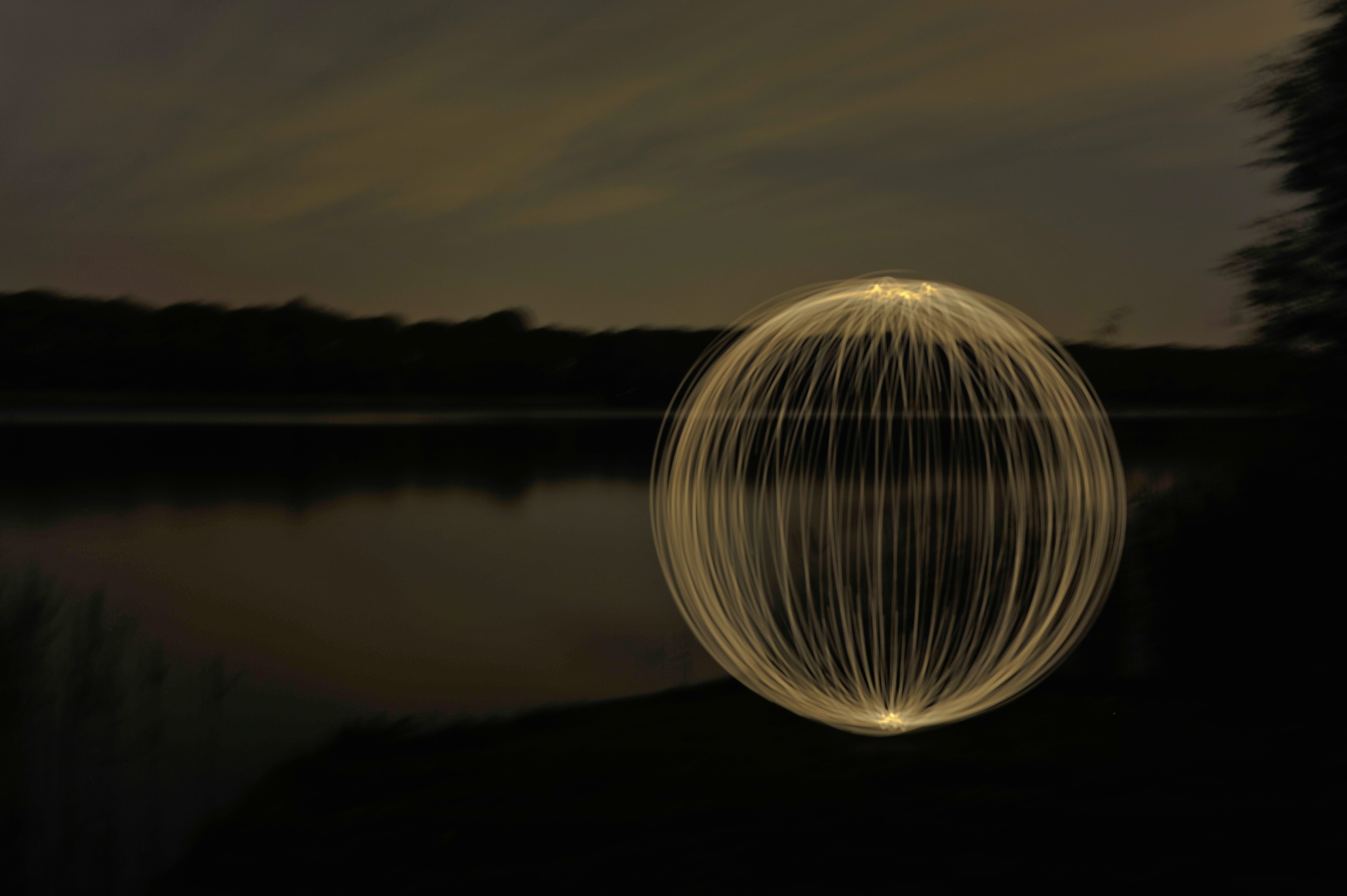Lichtballen draaien midden in de nacht.