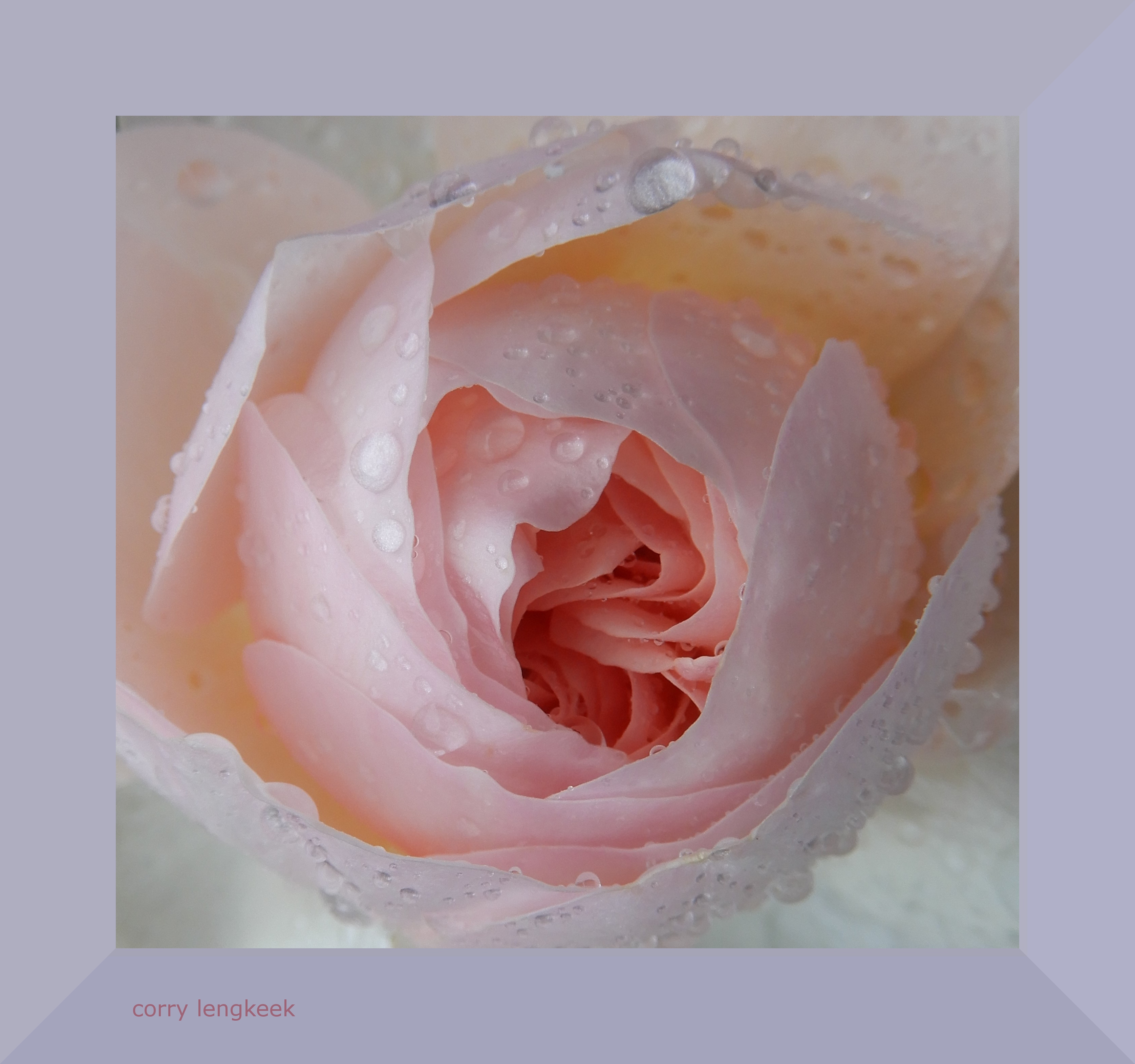 lichtroze Roos met regendruppels
