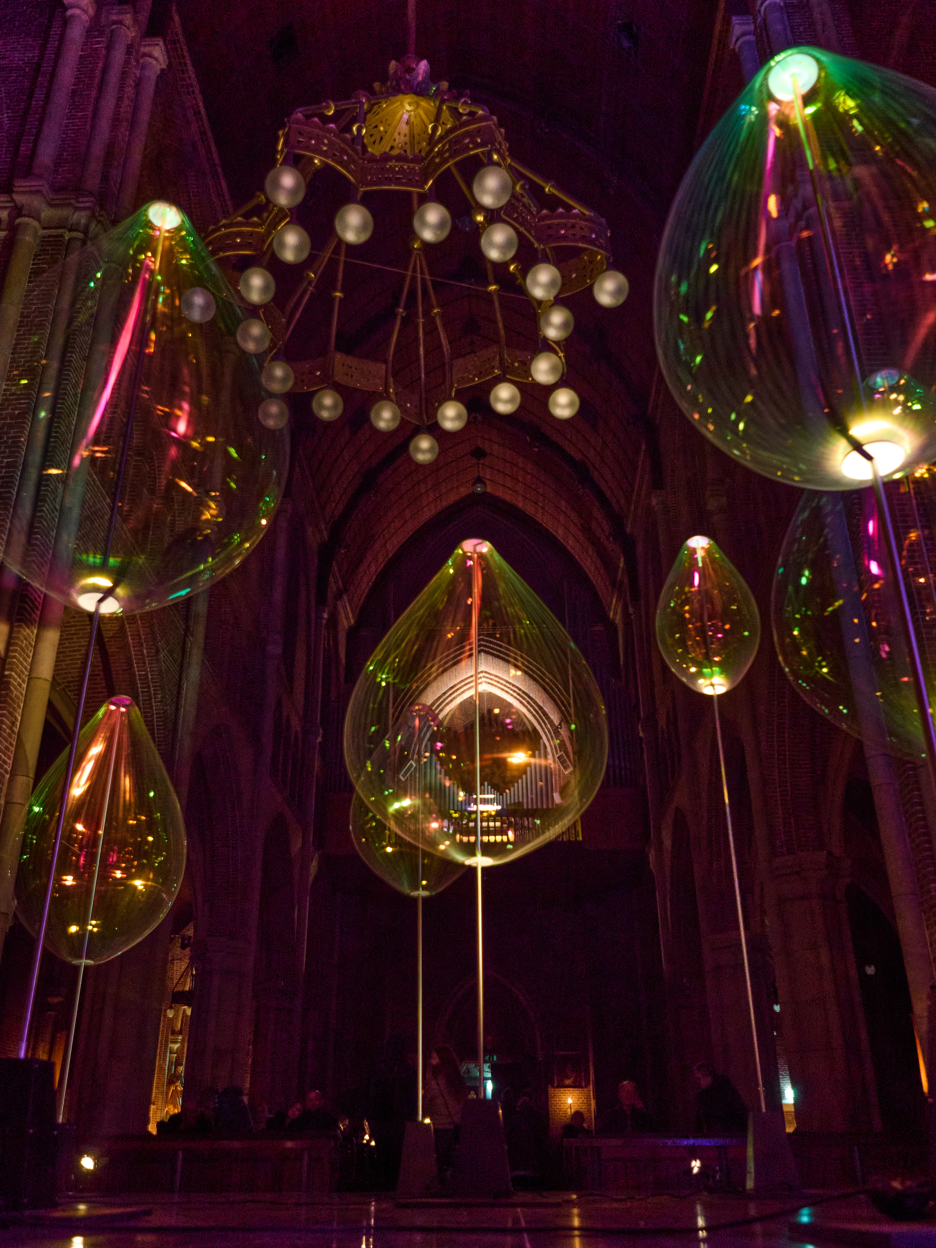 Hoge ISO foto van de glazen druppels tijdens Alkmaar Lichtstad 2022 in de St Laurentius kerk