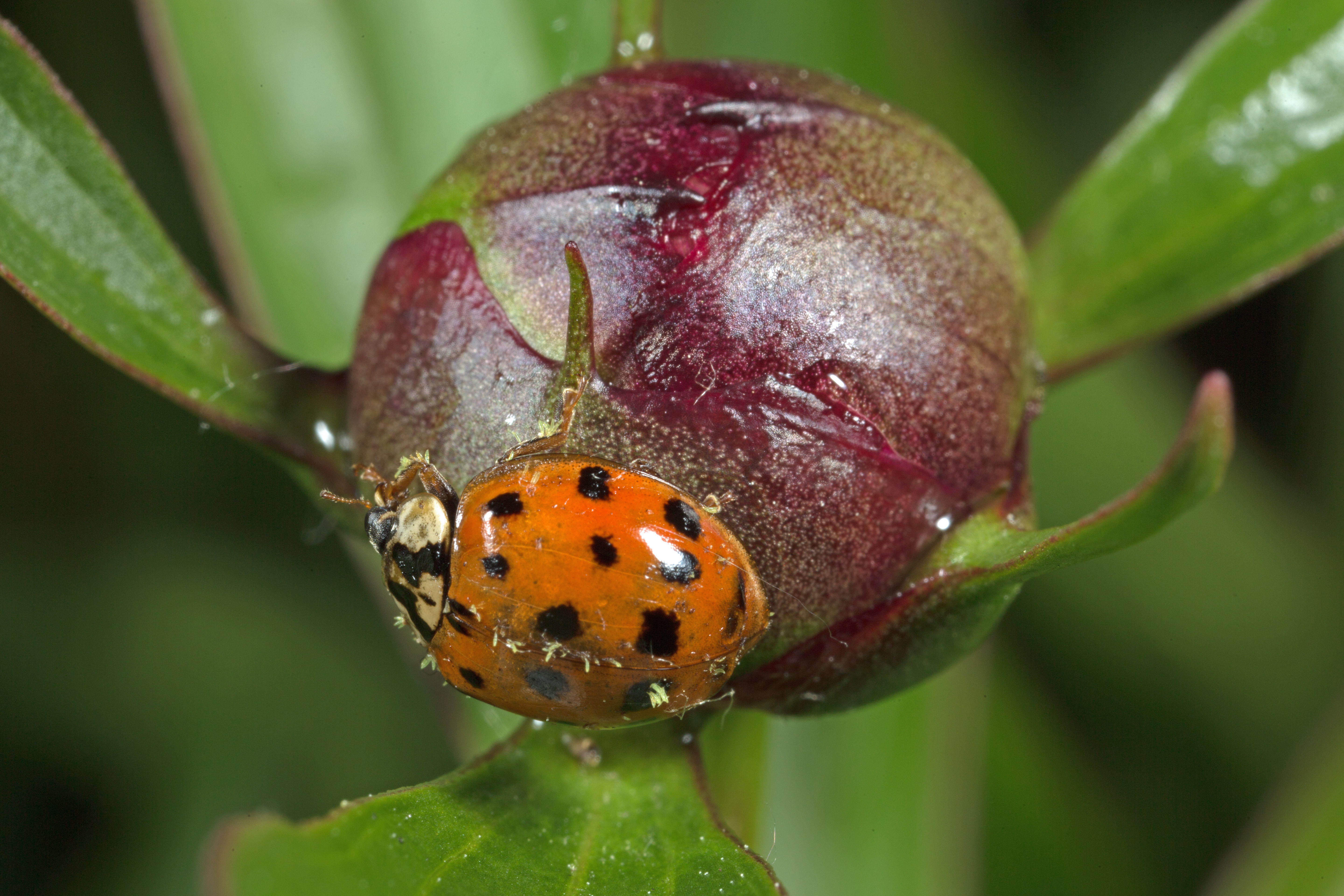 Dit Lieveheersbeestje deed zich tegoed aan het sap op de knop
