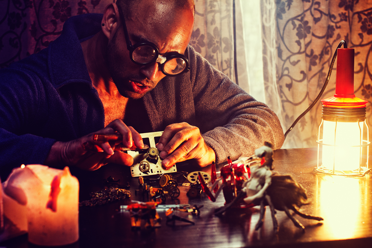 Zelf portret. Bij zelf portretten probeer ik altijd wat te leren. Hier wilde ik leren verschillende licht soorten balanceren. Zonlicht, Kaarlicht,Bouwlamp licht en flits licht. En zo leer ik mezelfs nieuwe dingen, door model te staan.