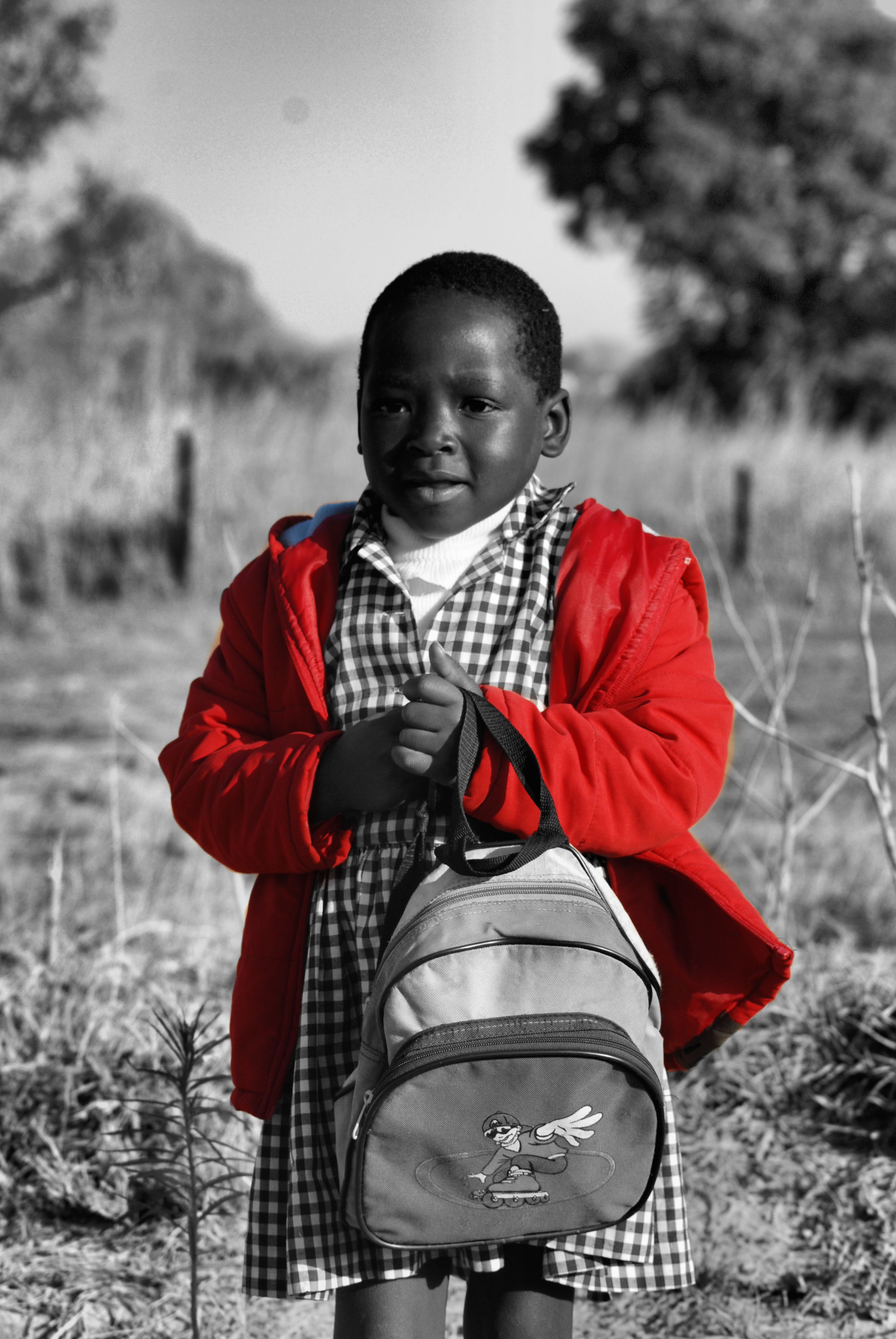 een afrikaans meisje op haar eerste schooldag