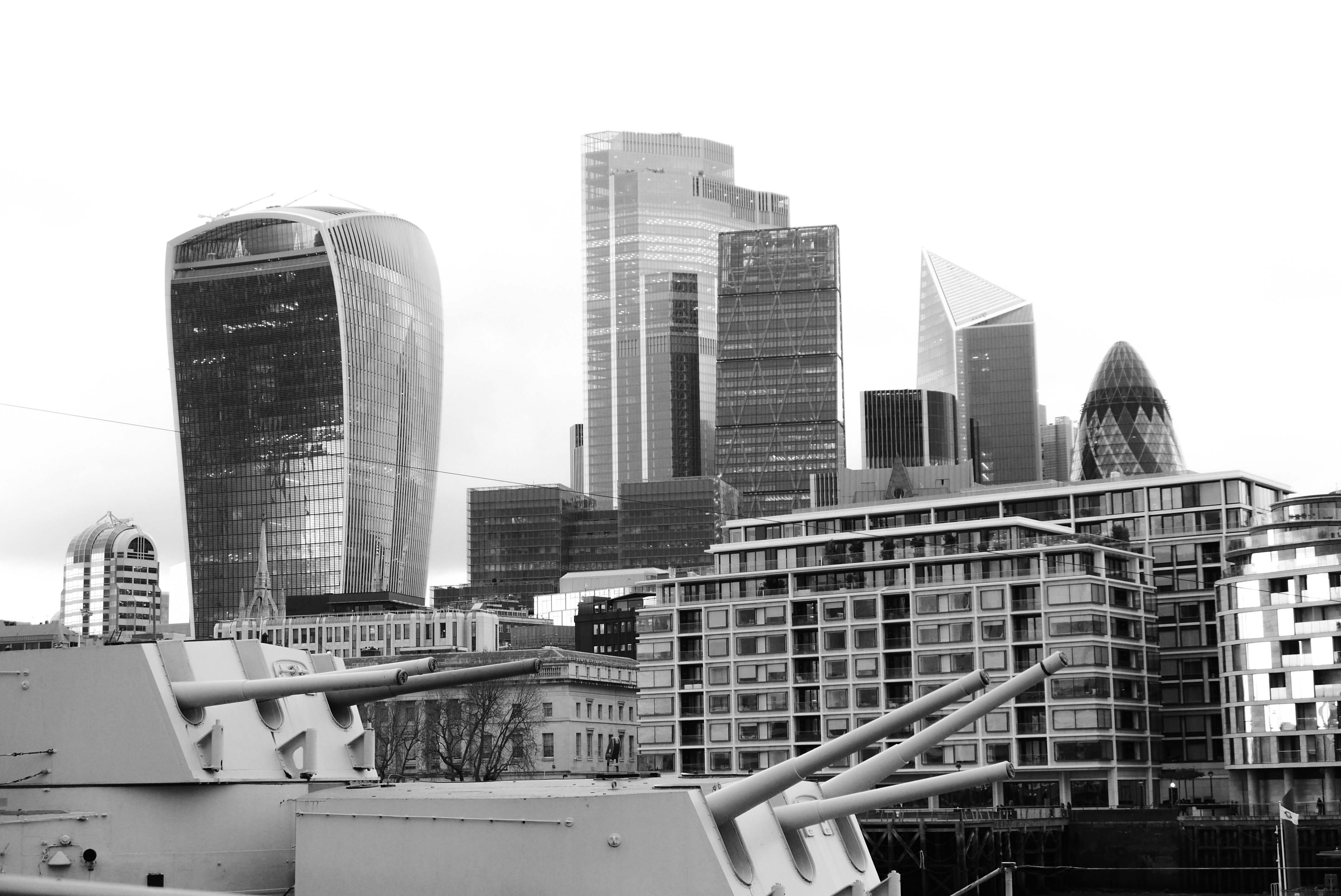 Zicht op de skyline van Londen, genomen vanaf de HMS Belfast (welk absoluut het bezoeken waard is!).