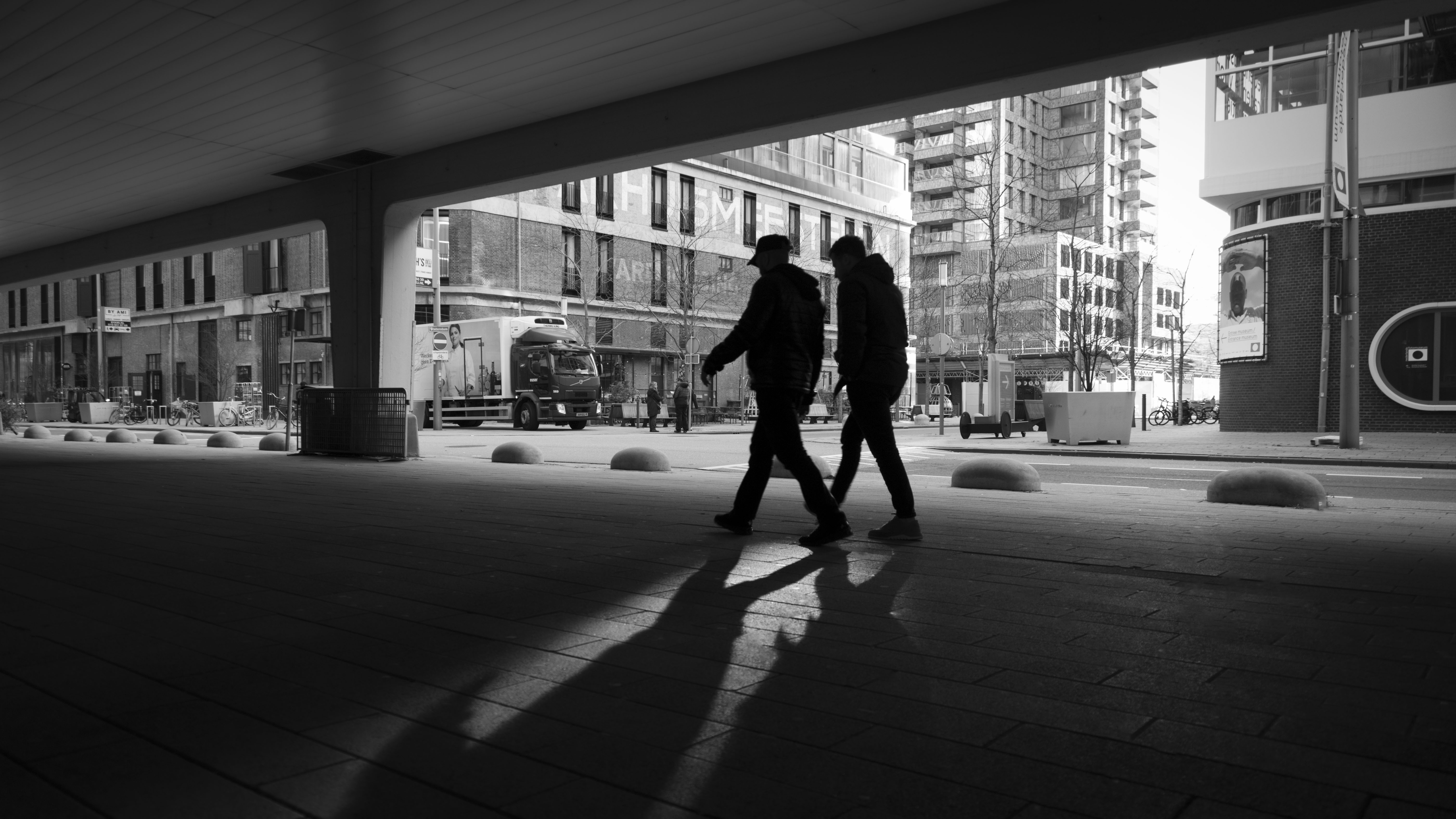 Lange schaduwen in de winter op de Kop van Zuid in Rotterdam