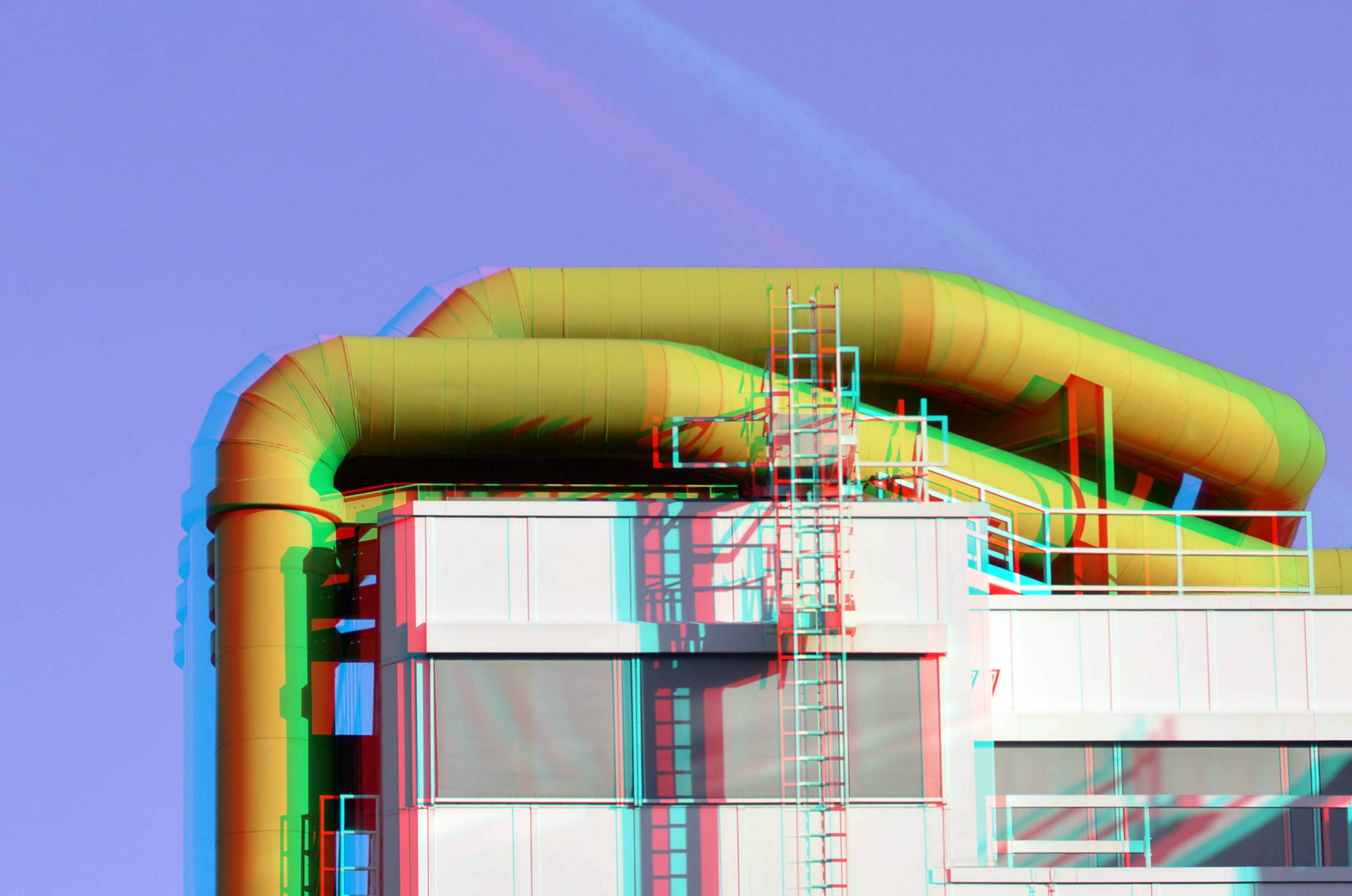 Luchtkanalen Bibliotheek Library Rotterdam 3D anaglyph red/cyan