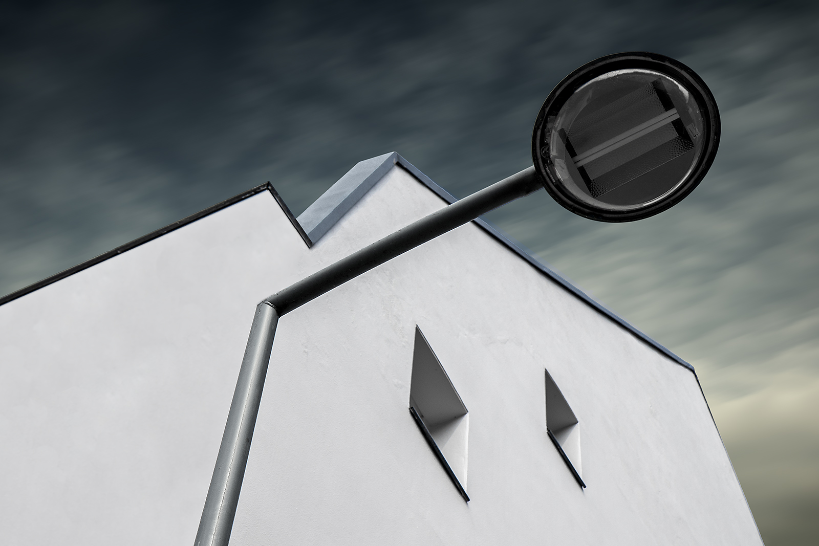 Een moderne, strakke gevel met dito straatverlichting ergens in Maastricht...
