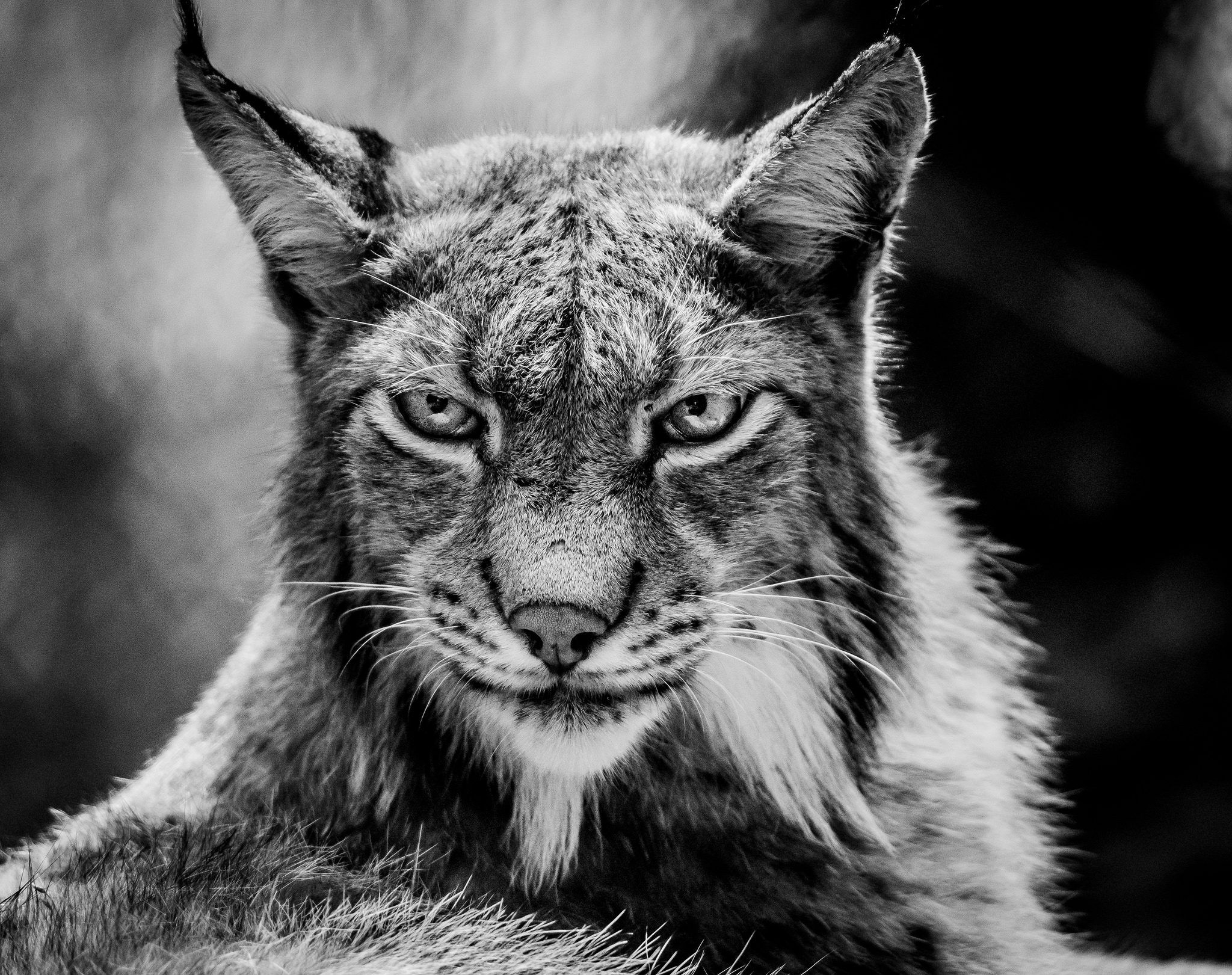 Zwart wit portret van deze mooie Lynx