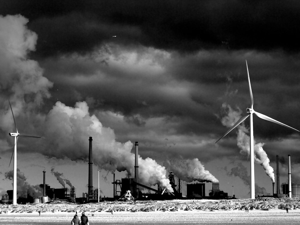 De laatste zonnestralen zorgen voor indrukwekkende wolken vanaf het strand bij Wijk aan Zee.
