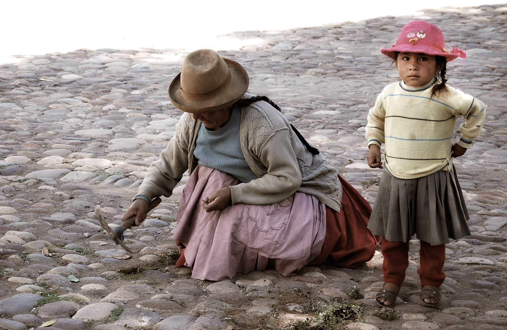 Meisje met haar moeder in Peru.