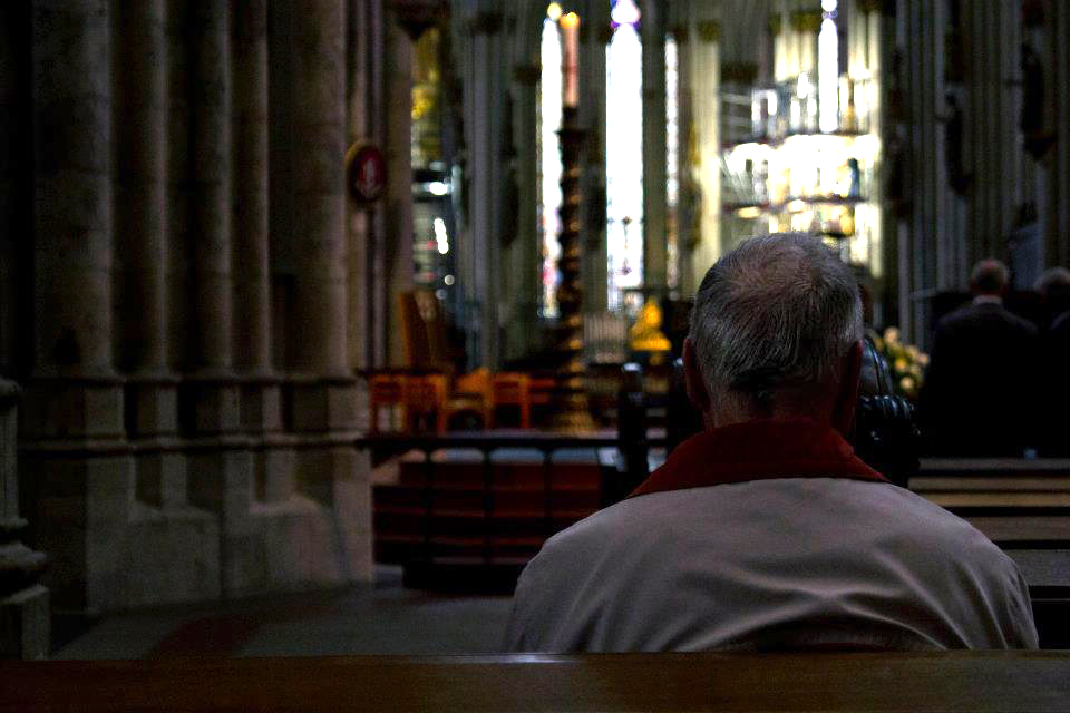 Een man in zijn eentje in de kerk