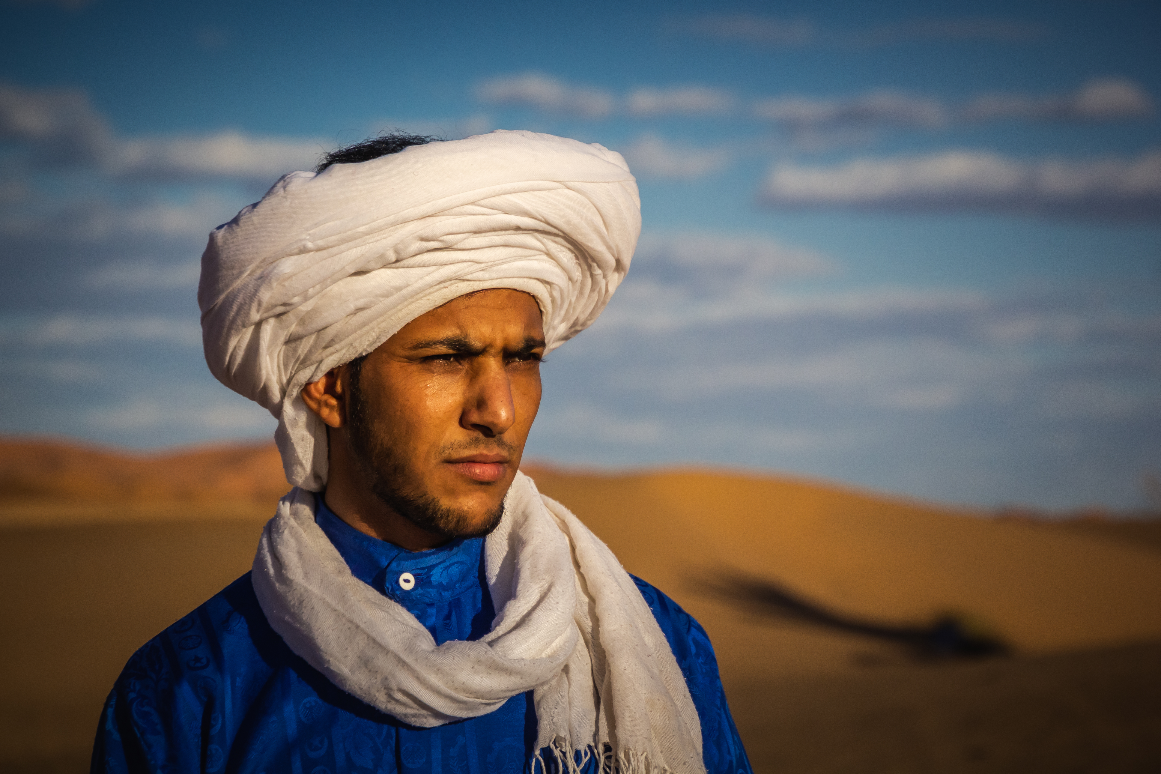Dit jaar maanden vastgezeten in Erg Chebbi, nu kijk ik daar met weemoed naar terug. De man op de foto is een medewerker van het hotel die wel voor mij wilde poseren.