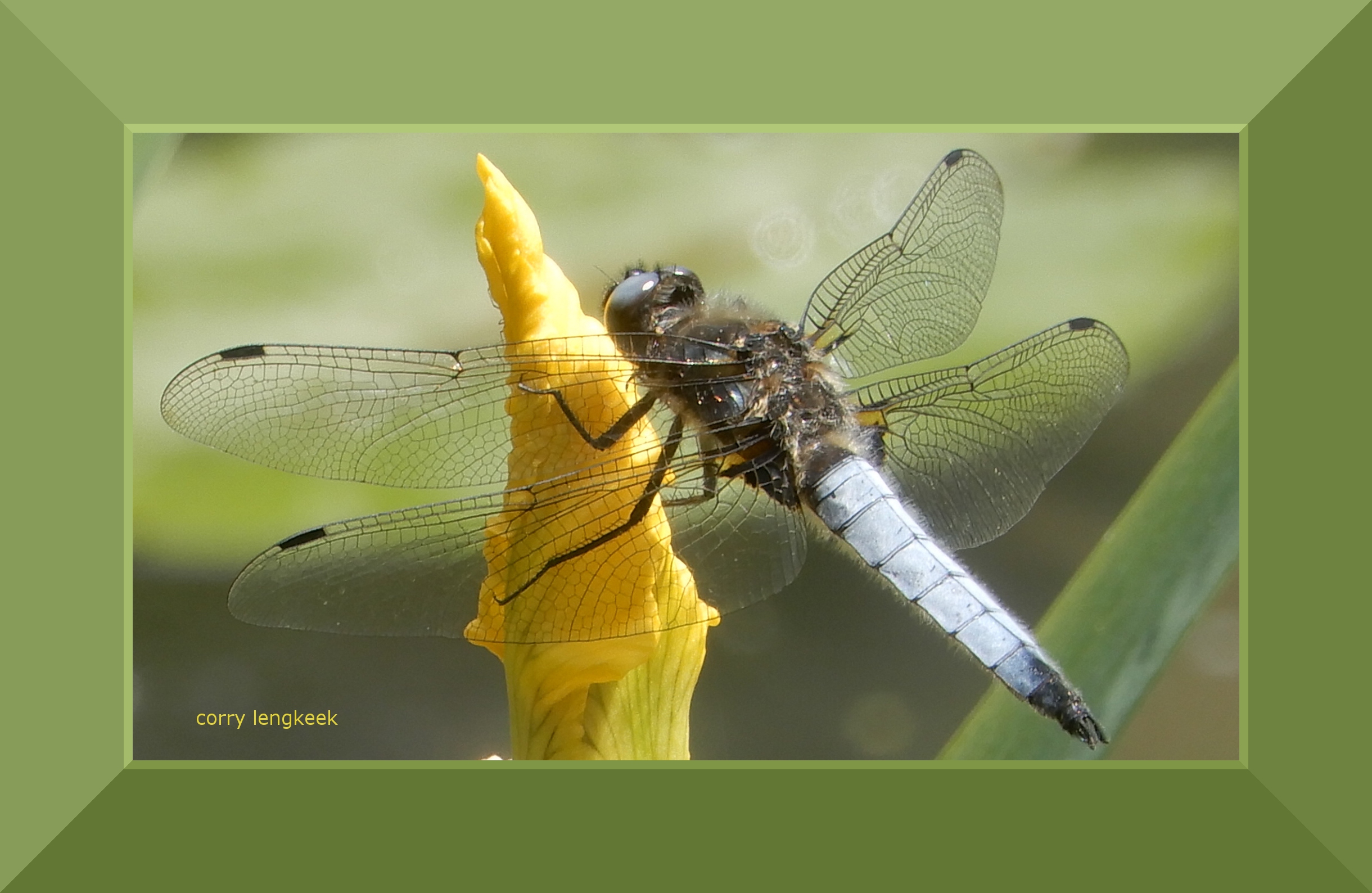 man-korenboutlibelle-op-knop-gele-lisbloem