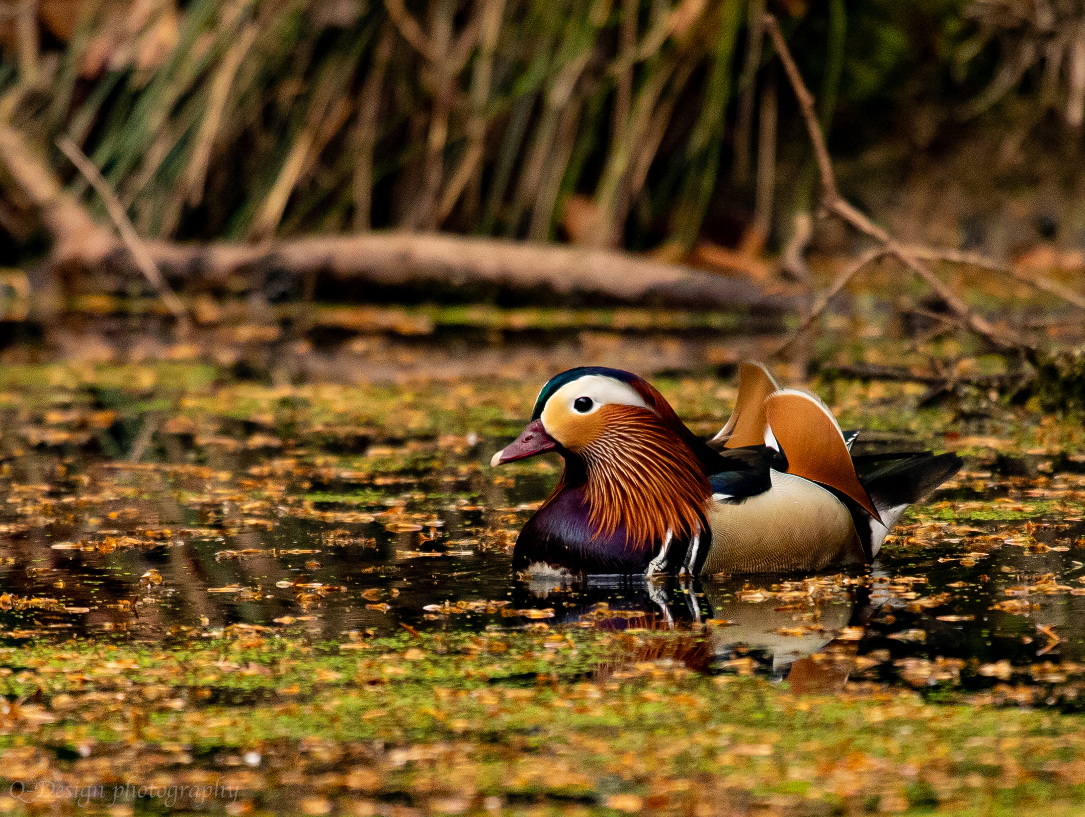 Gespot in een klein bospoeltje, hurkend en uit de hand genomen.