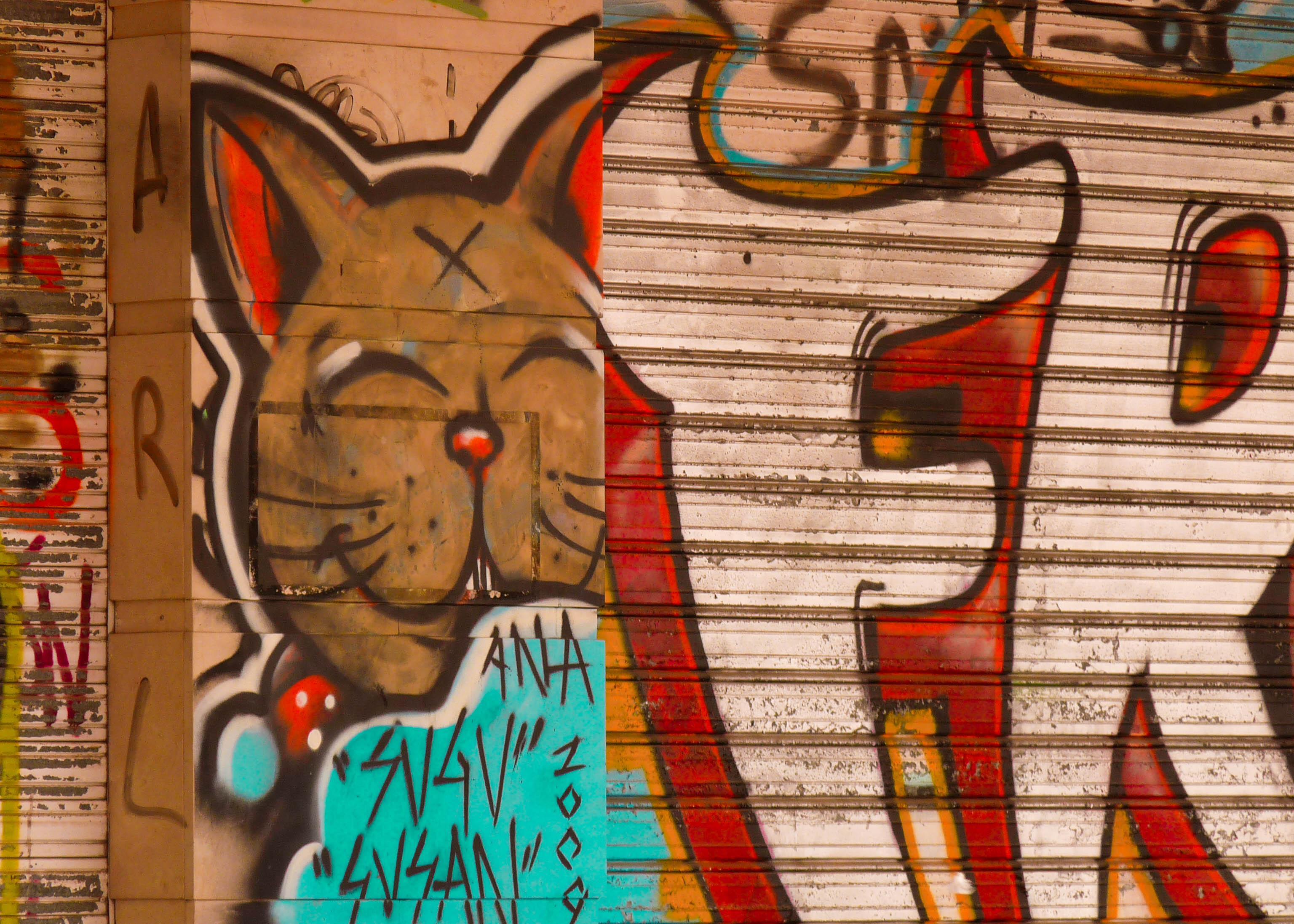 Dit is slechts een klein fragment van een volledig met graffiti beschilderd, verlaten theater in Spanje. Geen mens te zien en alleen de geluiden van een zacht ruisende zee en het gekrijs van meeuwen op de achtergrond :)