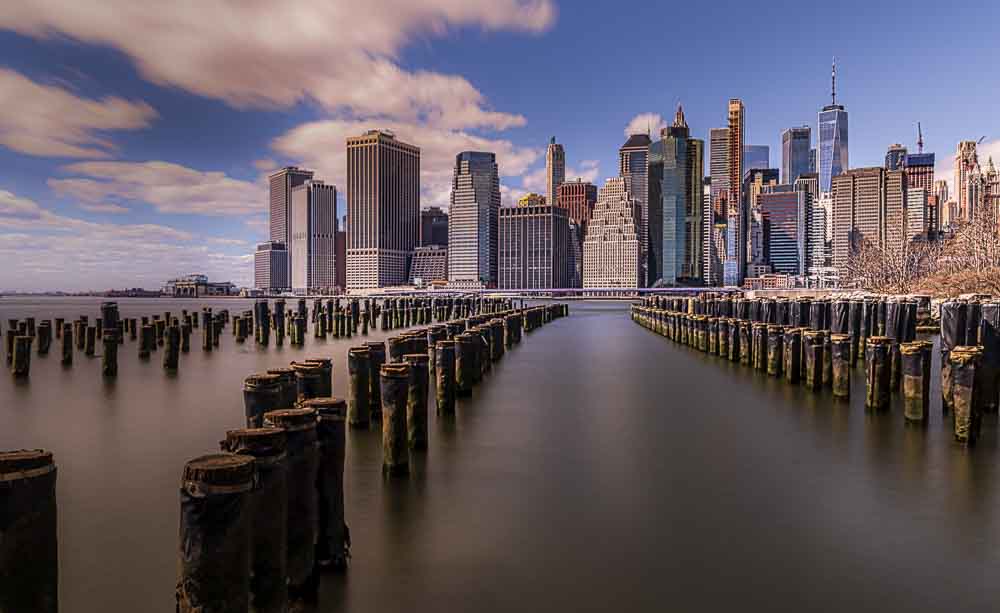 Brooklyn Bridge Park is een van de mooiste locaties in New York om de Skyline van Manhattan te fotograferen, met een mooie voorgrond.