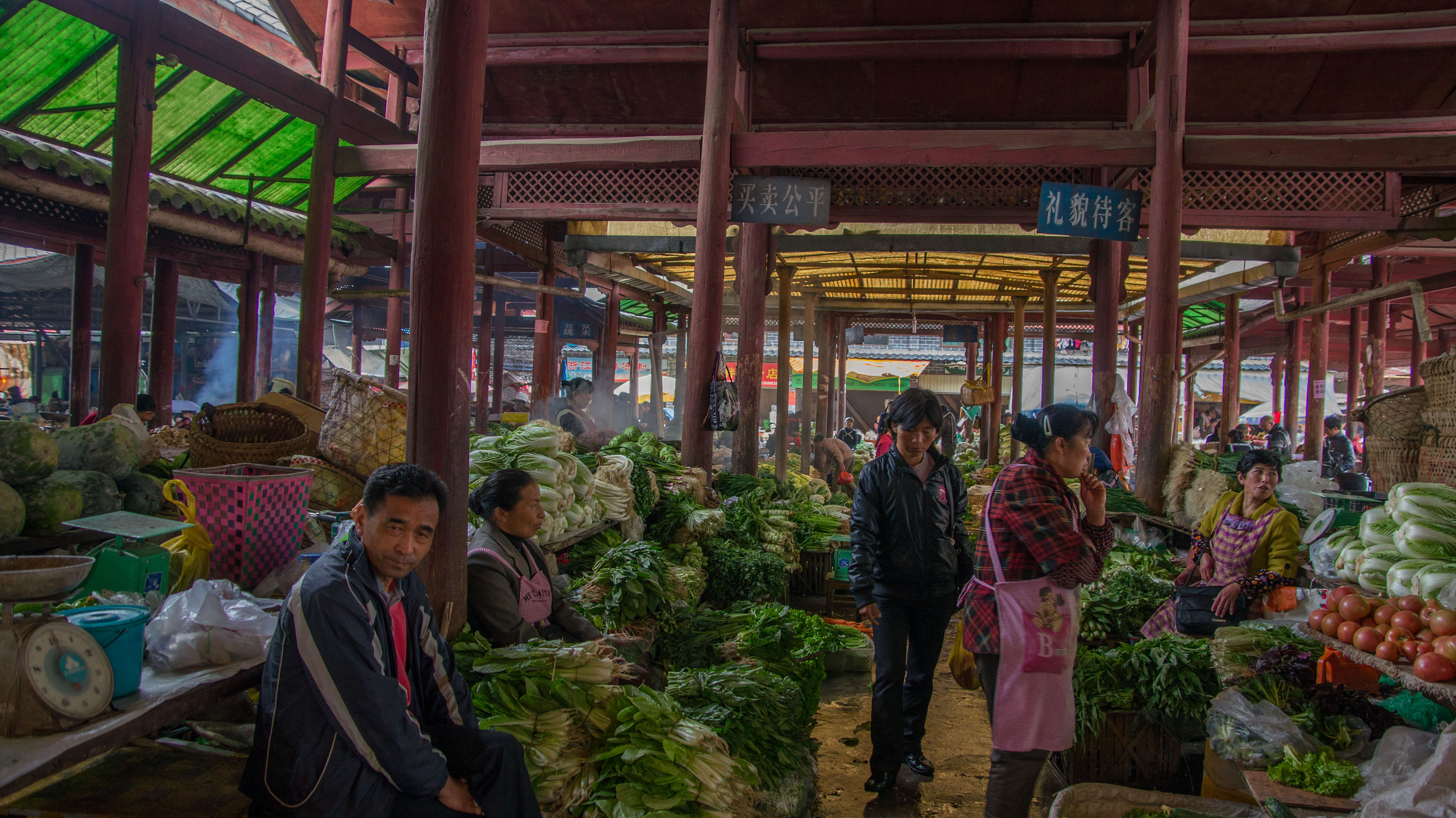 Een van de vele heerlijke versmarkten in Lijiang