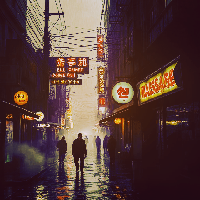 where Chinese girls with their small hands massage the rough, rough backs of thieves and neat fathers and Chinese characters flash in neon The city of the Godless