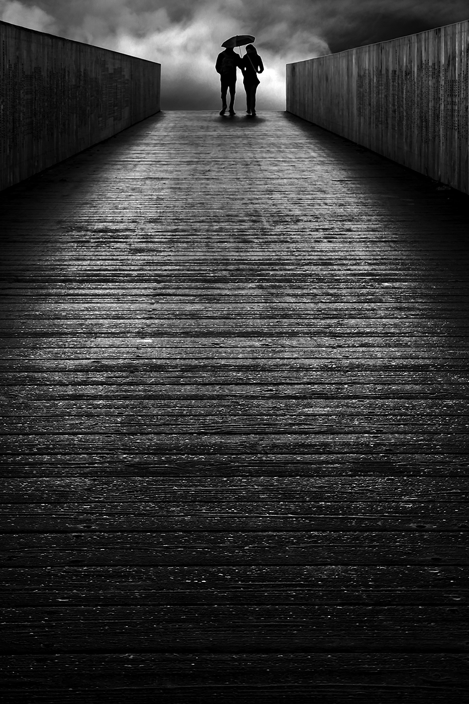 Tijdens een regenachtige wandeling in Rotterdam... een koppeltje onder moeders paraplu...