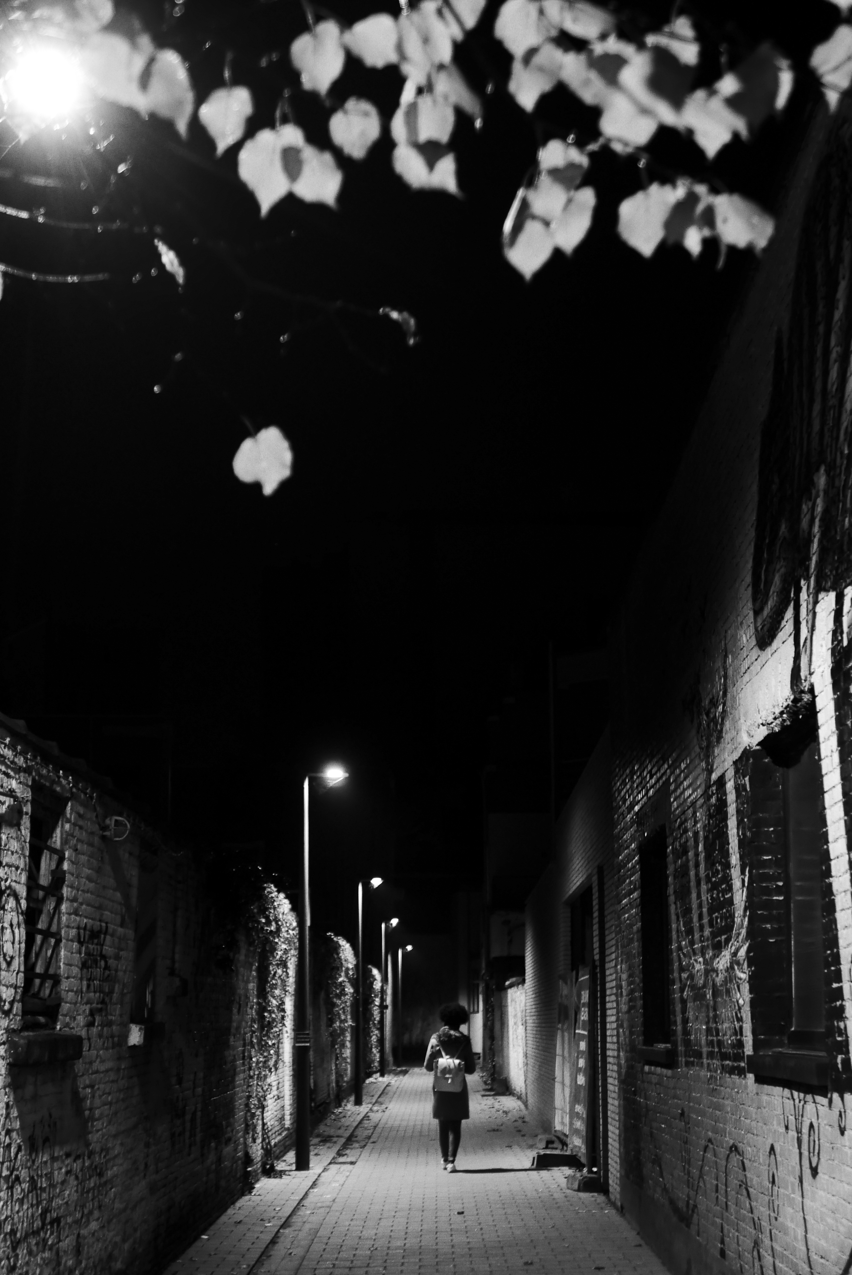 Foto van de "maurice verbaetsteeg" in de avond, Antwerpen, België.