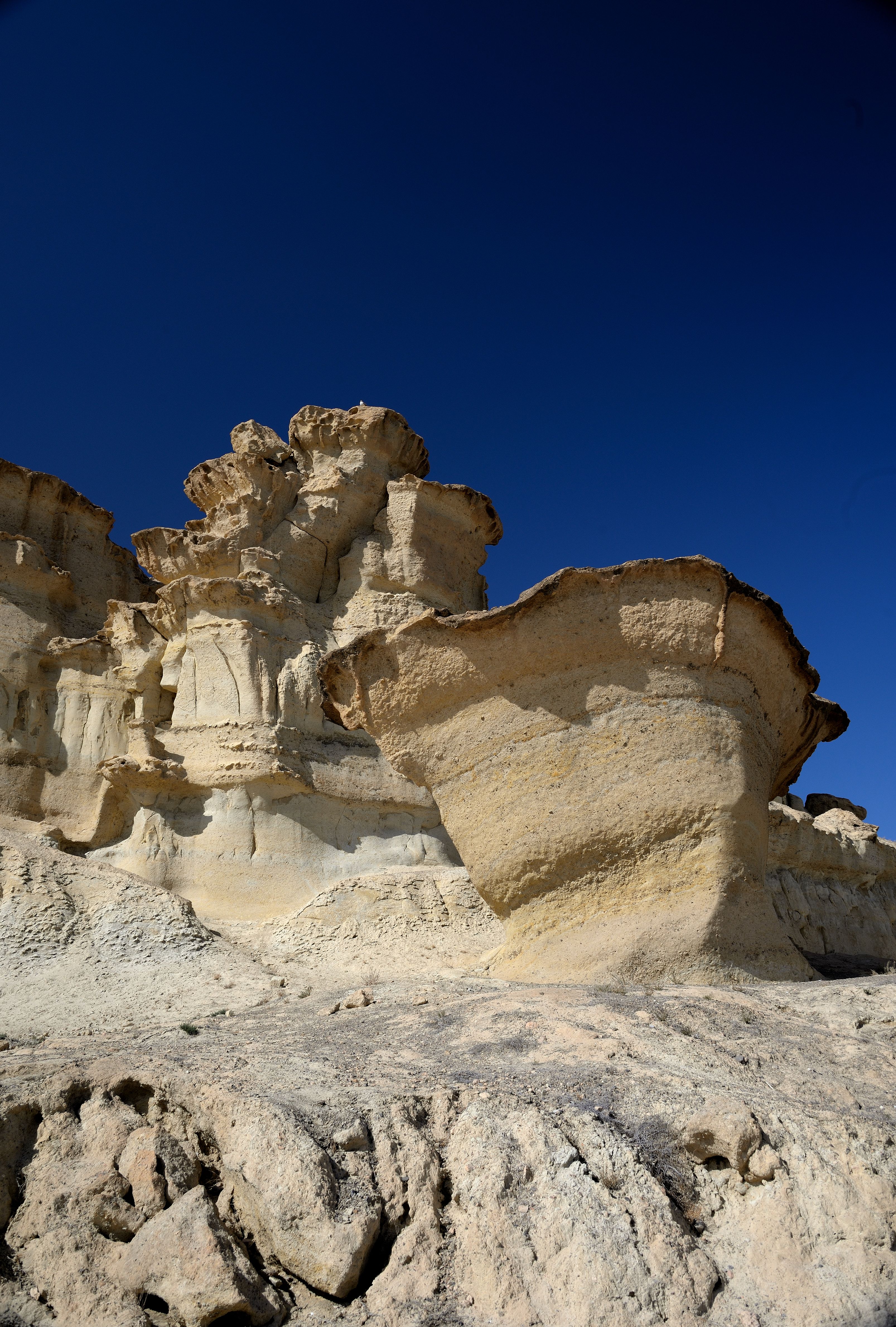 Erosie op de kalkzandsteen kust bij Mazarron, Spanje.