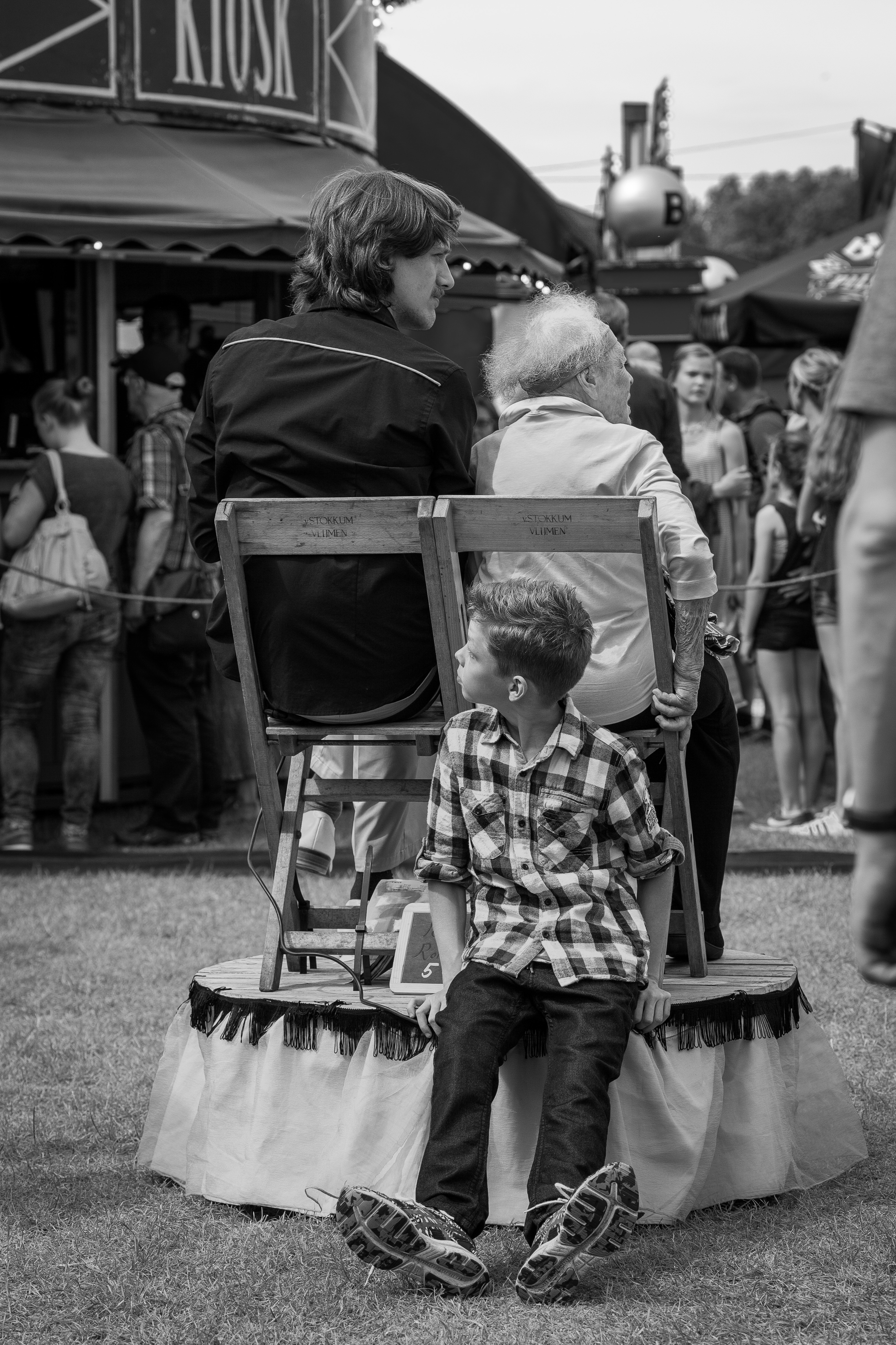 Een brutaal jongetje lift stiekem mee op de persoonlijke rondleiding van een oudere vrouw over De Parade in Den Haag. Het is overigens niet haar eigen kleinkind.