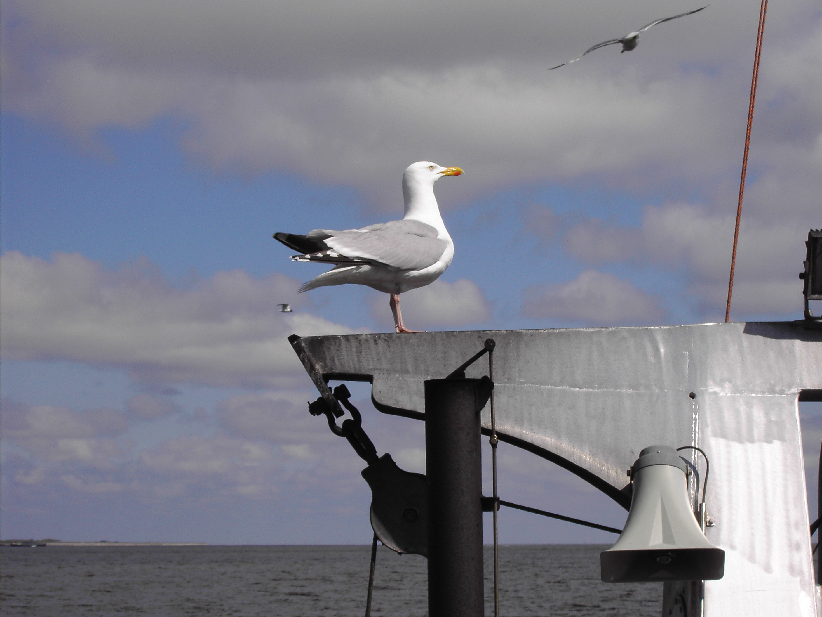 Een meeuw op een schip bij texel