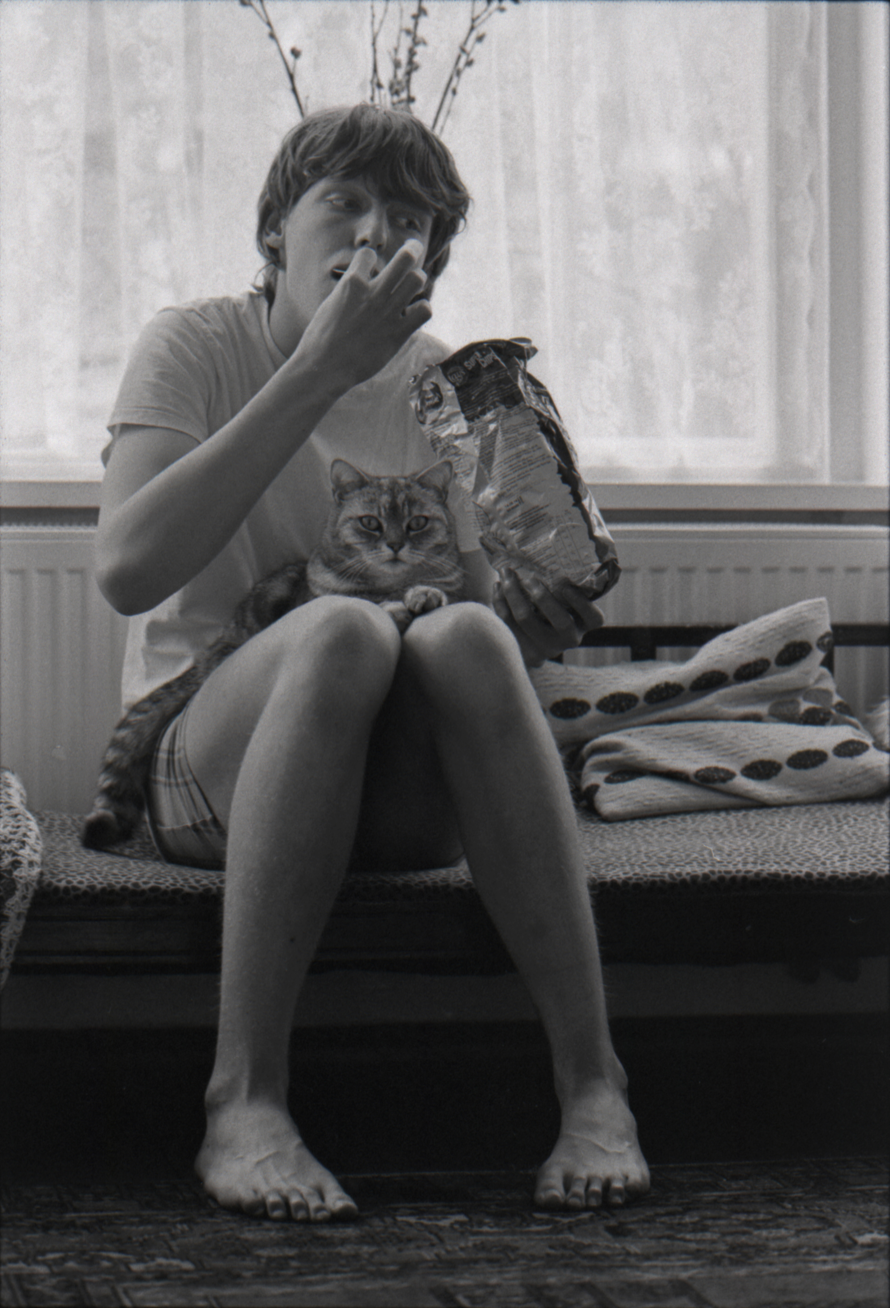 Met de kat op de bank