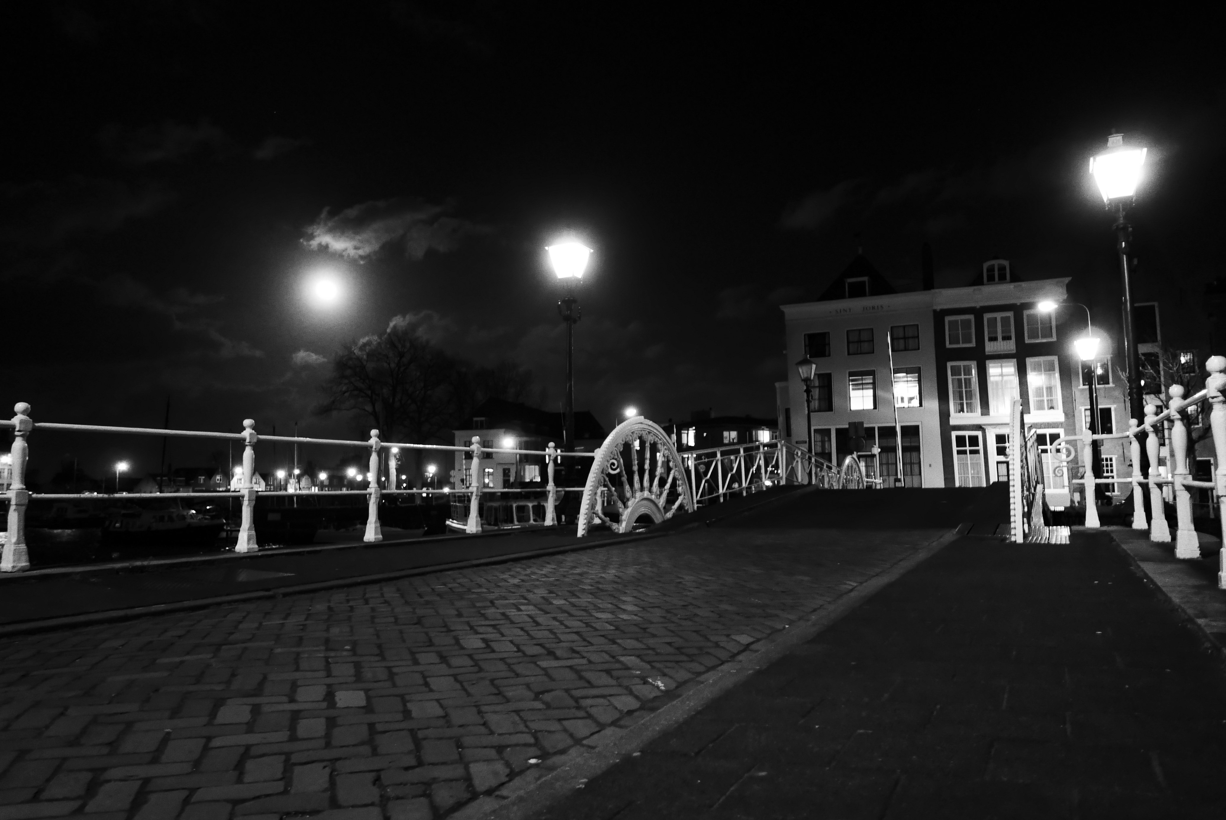Volle maan in Middelbrug, Zeeland. Genomen aan de "spijkerbrug".