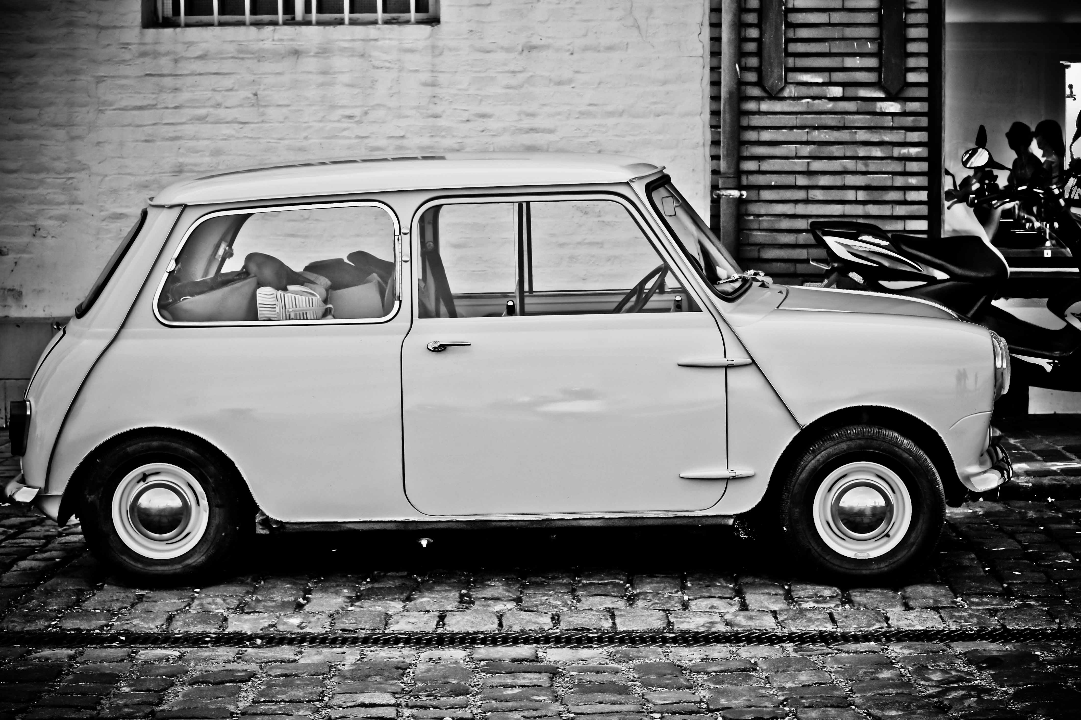 Prachtige oude mini in het straatbeeld.