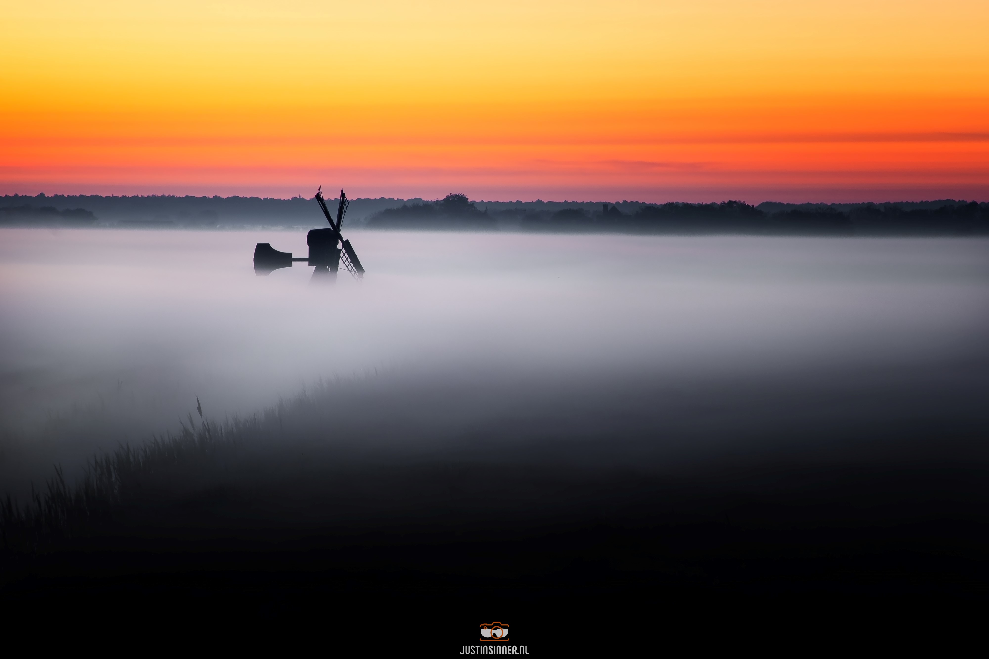 Mist in Waalenburg op Texel met prachtige oranje hemel! #Texel #justinsinner #fotografie #waddeneiland #weer #mist #canonnederland