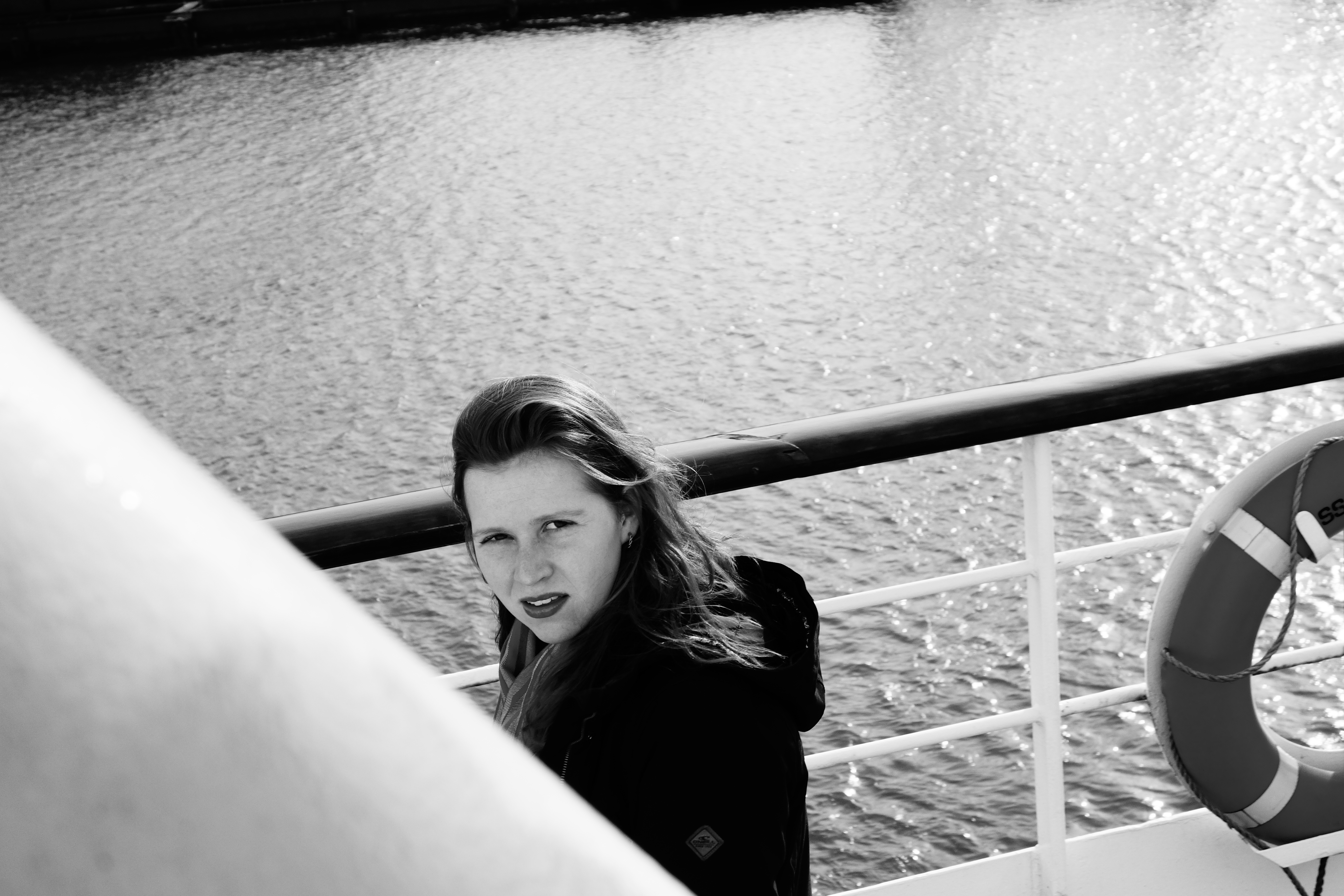 Foto van mijn vriendin Elena, genomen op het dek van de SS Rotterdam (Cruise schip-museum).