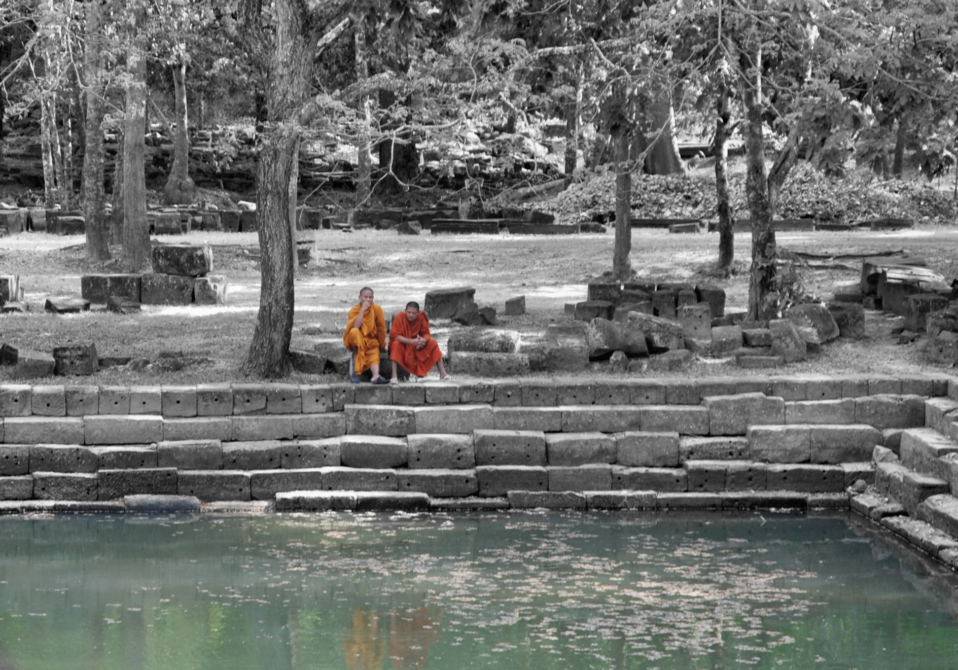 monniken aan de waterkant