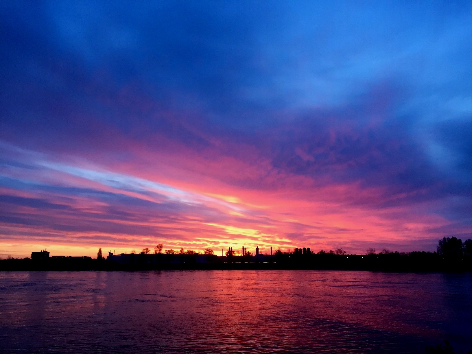 Fabriek aangelicht door opkomende zon.