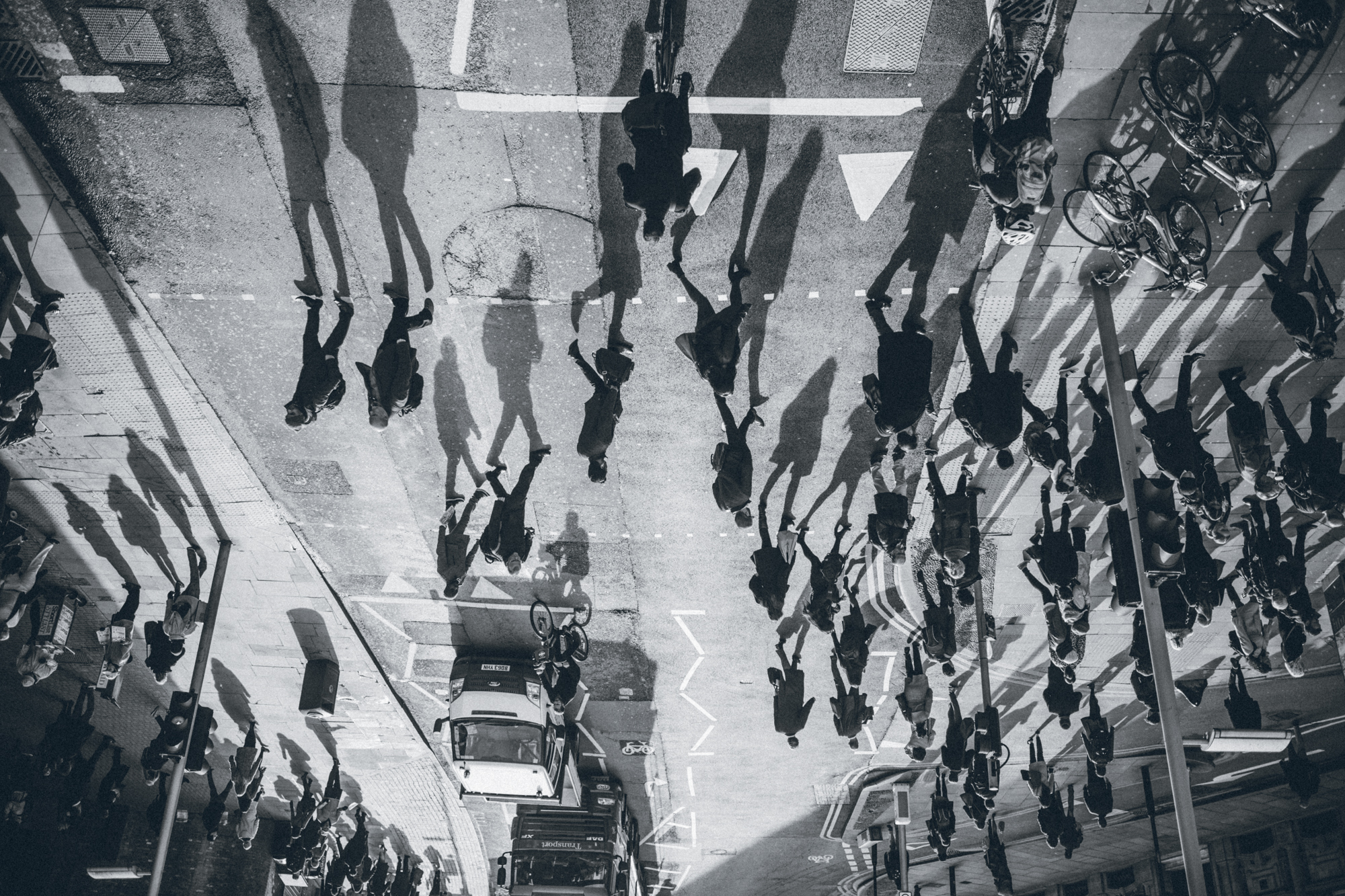 schaduw spel van de mensen die naar hun werk gaan vlakbij London Bridge station