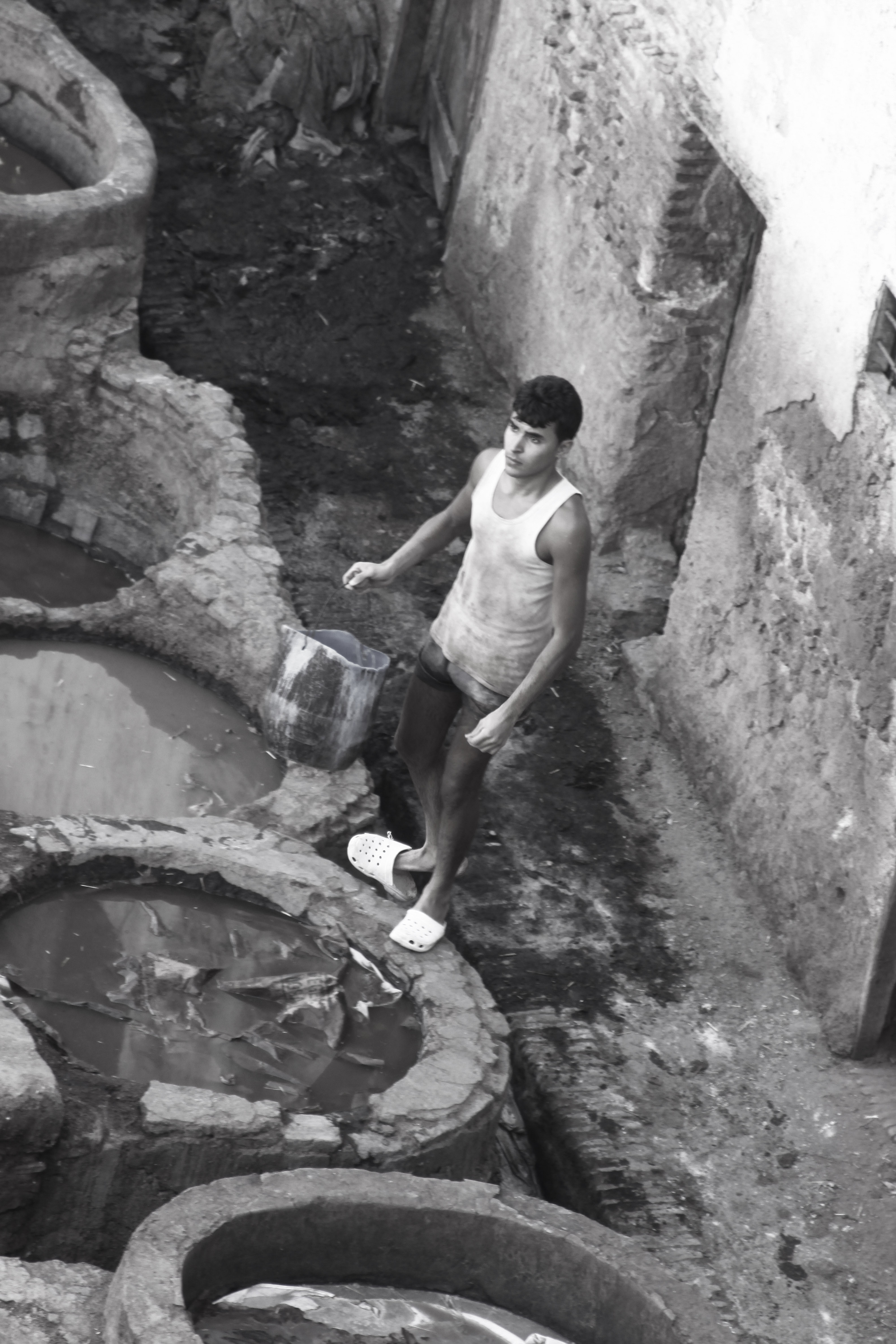 typische toeriste plaatje van de leerlooiers in Fes/Marocco
