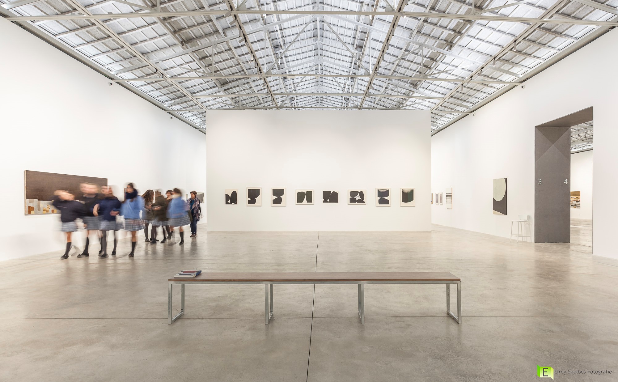 expositiehal museum met groep studenten.