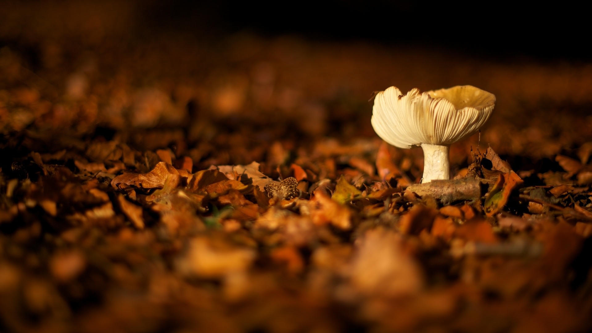 A mushroom in a streak of sunlight caught my eye. Heavily underexposed to hold the highlights.