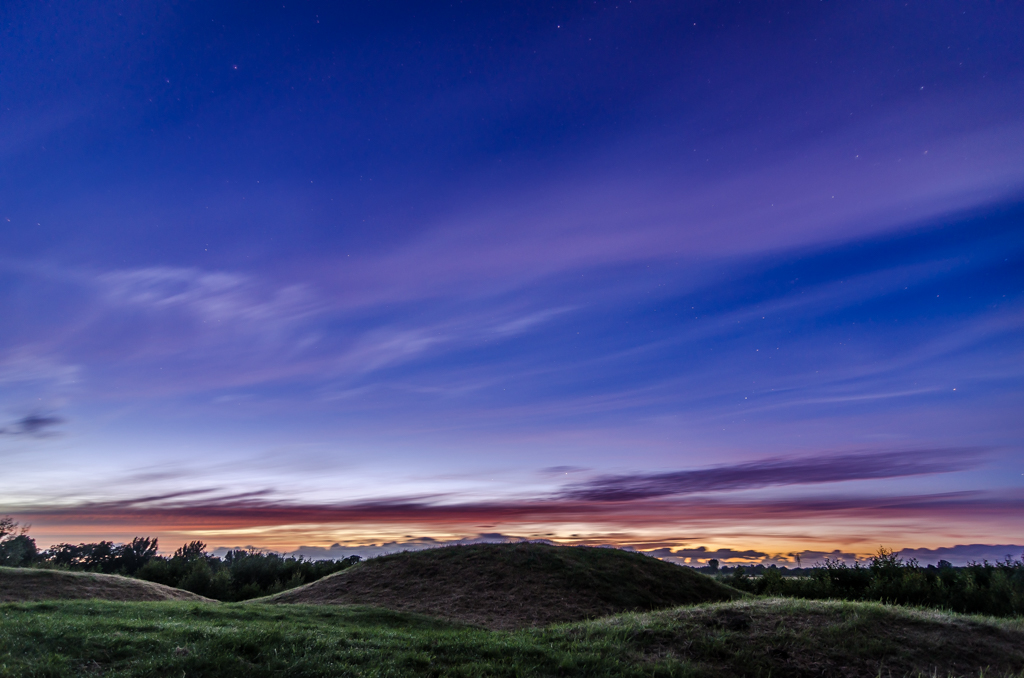 De dagen zijn lang, soms heel lang. Deze foto heb ik gemaakt om 5 voor 12 waarbij de zonsondergang nog steeds gaande is. Dit geeft erg mooi licht aan de wolken die wat hoger zitten icm de sterren.