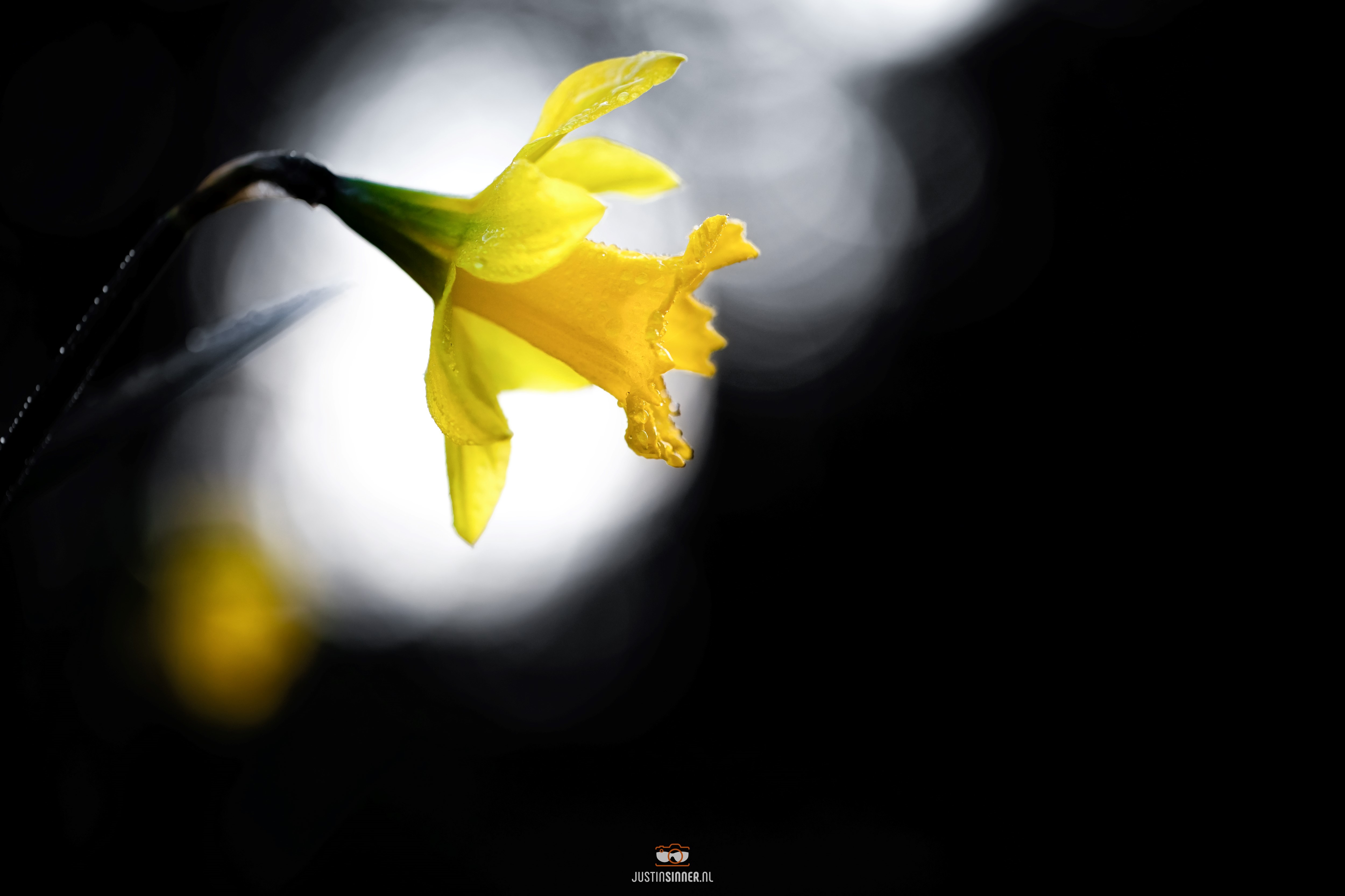 Narcis in het bossie op de Hogeberg. Zon is bijna onder, het is donker in het bossie, het licht achter de bloem is tegenlicht dat door de bomen schijnt. #Texel #justinsinner #fotografie #voorjaar #waddeneiland