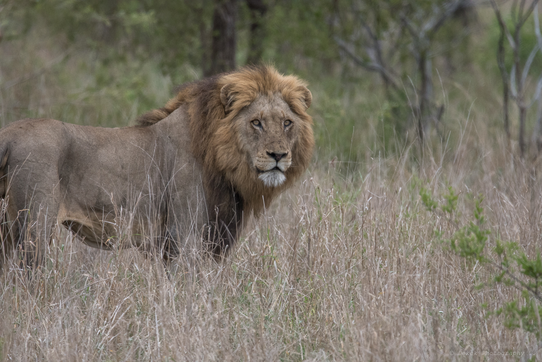 De foto gemaakt in het Kruger park tijdens groepsrondreis door een deel van Zuid Afrika ...Het was geweldig om z'n indrukwekkende leeuw tegen te komen .....En deze was de laatste van de groep van drie .