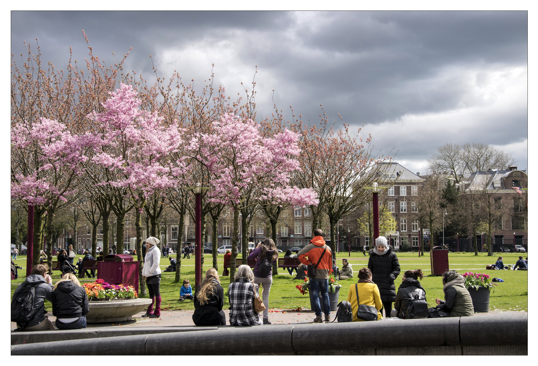 Na binnen de kunst in het Stedelijk Museum Amsterdam gezien te hebben was er buiten ook ruimte voor een mooie plaat met lentekleur en een prachtig wolkendek waar de zon in scheen.