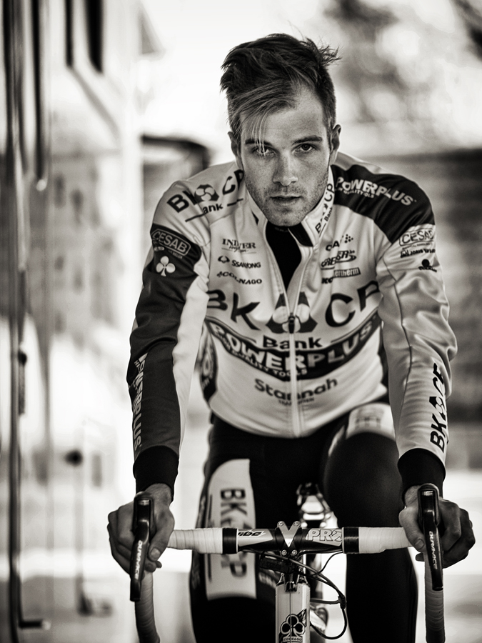 Wereldkampioen Niels Albert warmt op op de rollen voor de wedstrijd