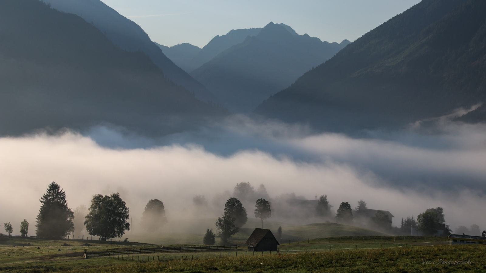 De mist in de ochtend in Rohrmoos