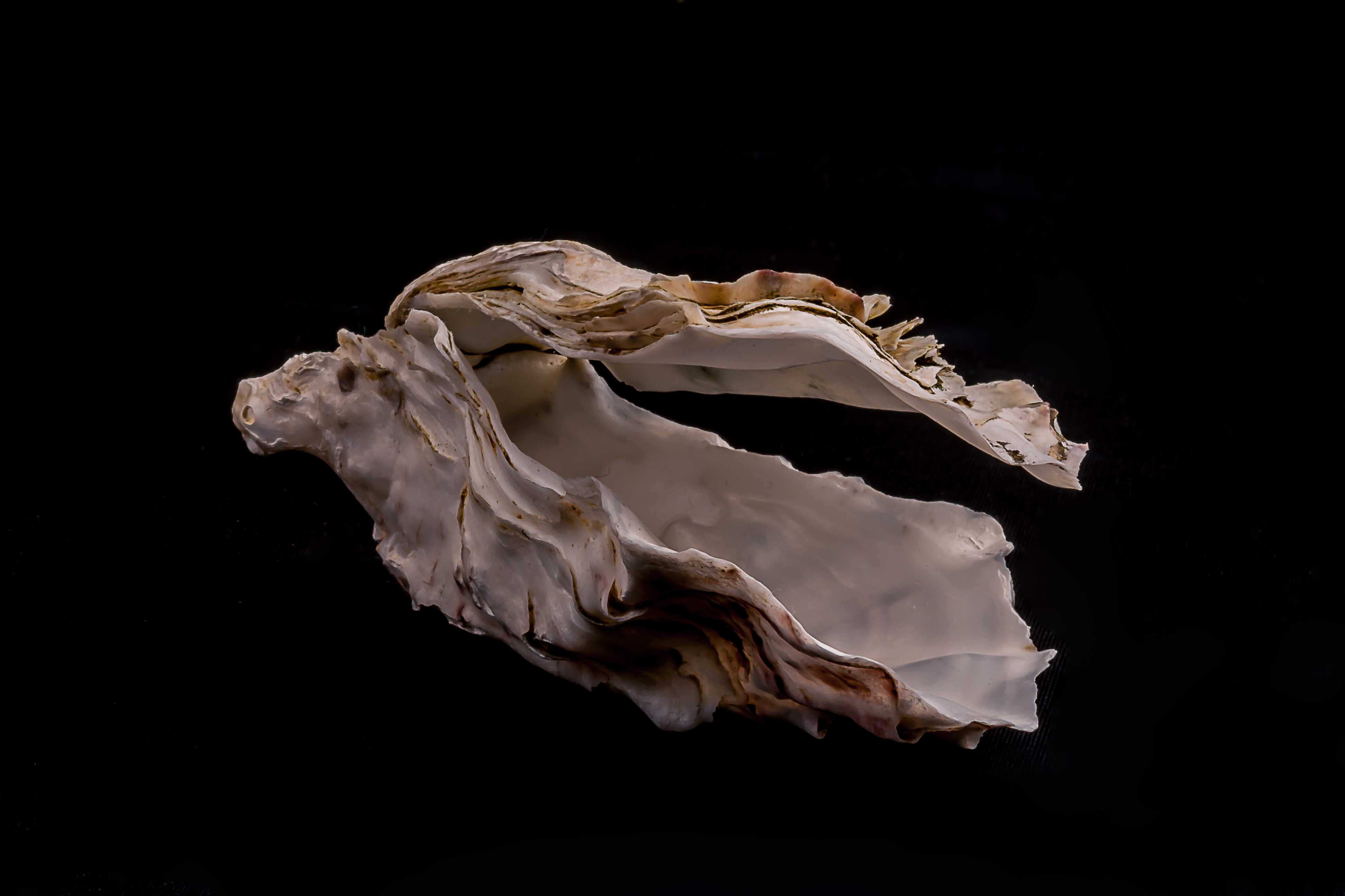 Oesterschelp lijkt op een gevleugeld paard; hoofd links boven.