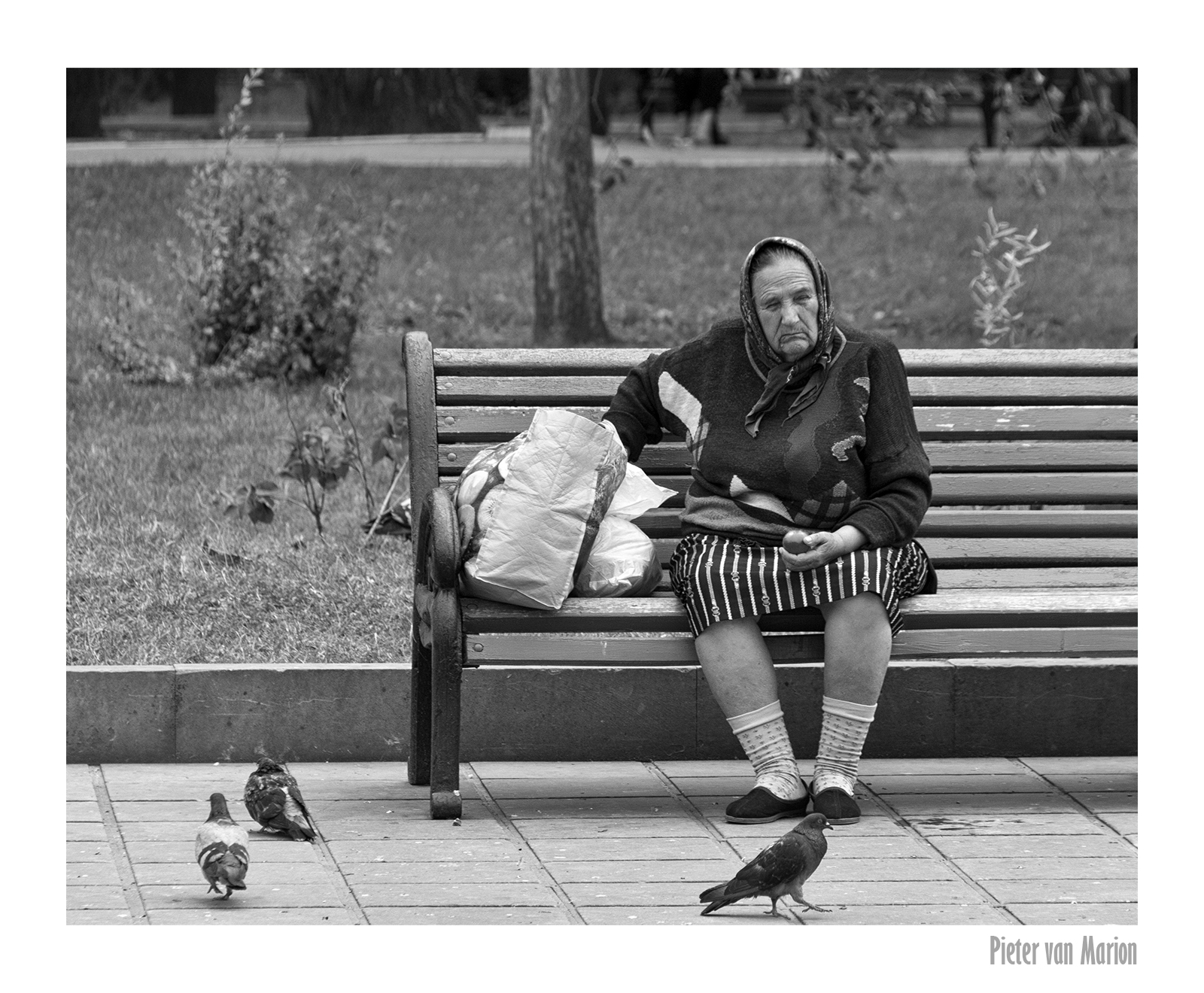 Het hoofdplein in Chisinau (Moldavie) daar zit deze oude oma op een bankje treurig in het niets te staren