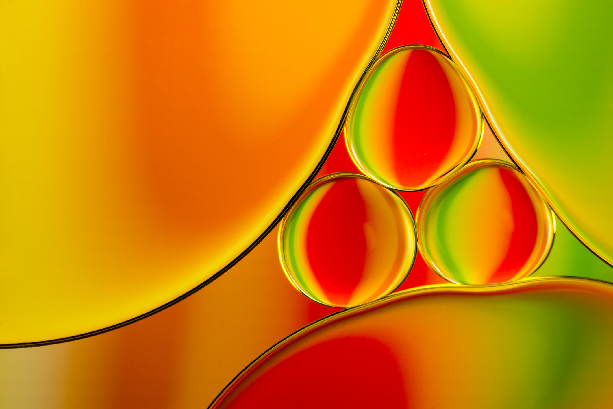 Foto is gemaakt met olie op water. Door een klein beetje afwasmiddel toe te voegen ontstaan er diverse cirkels.